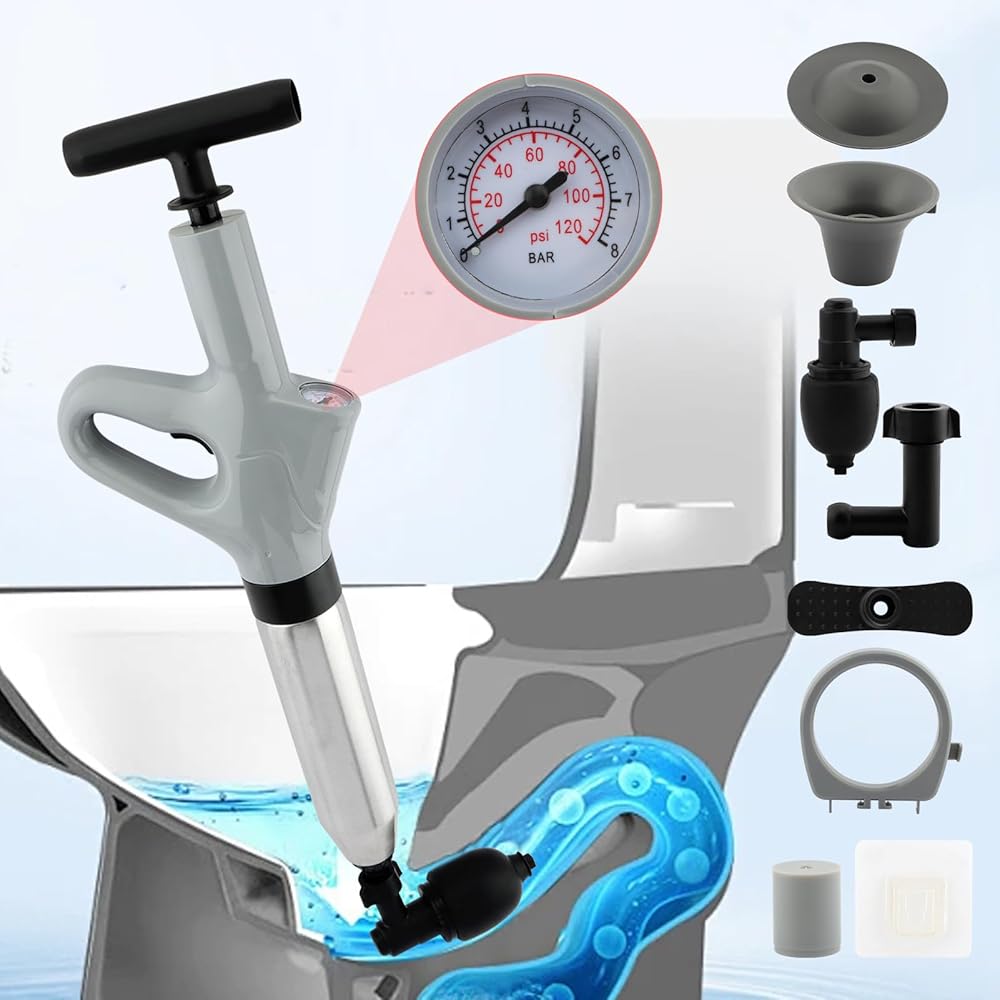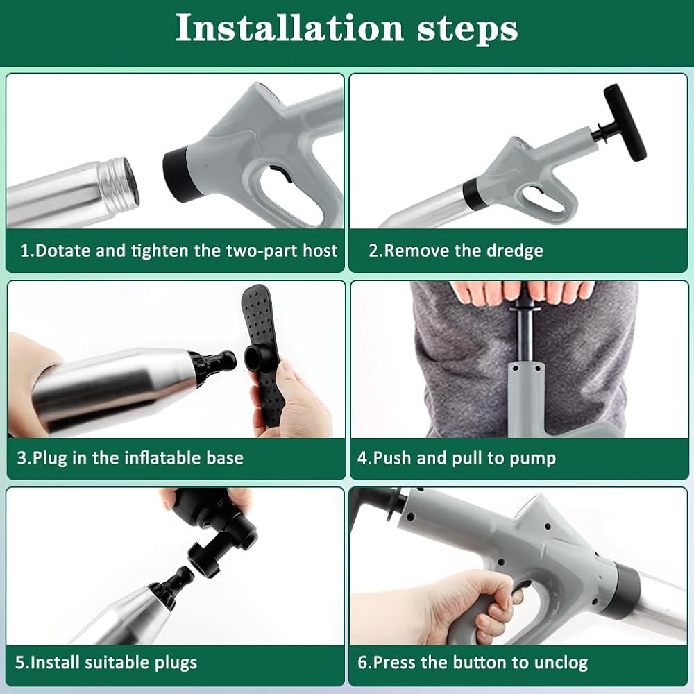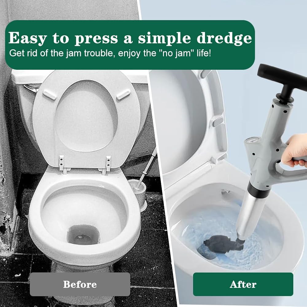 【EASY OPERATE】The toilet plunger is easy to assemble and use, manually inflates and pressurizes, press the switch, and the power of high-pressure atmospheric pressure can quickly and easily flush away blockages in the toilet or pipes.