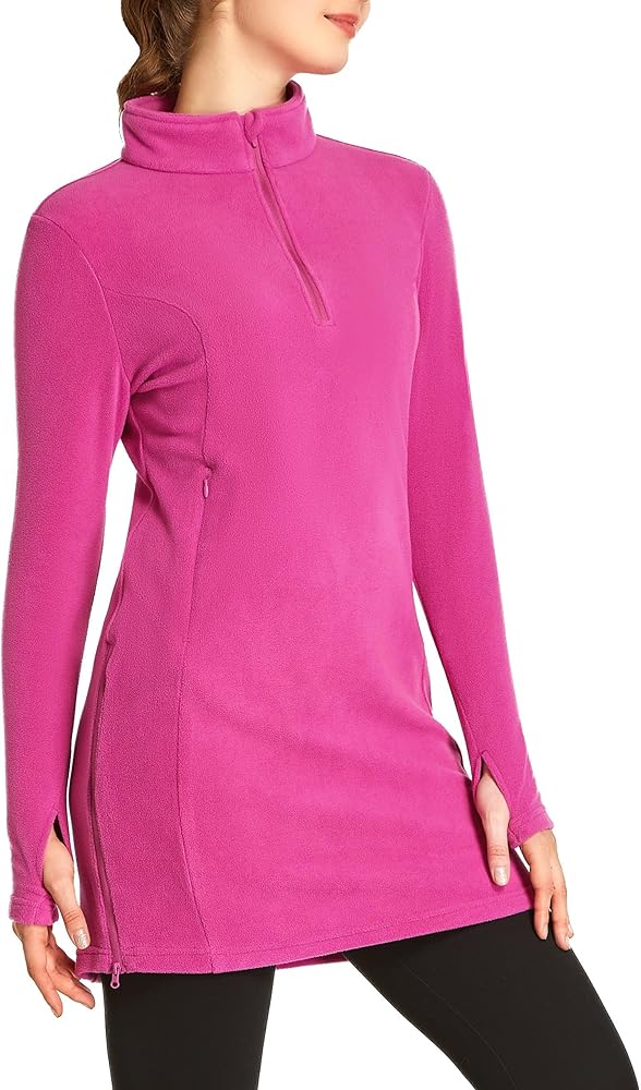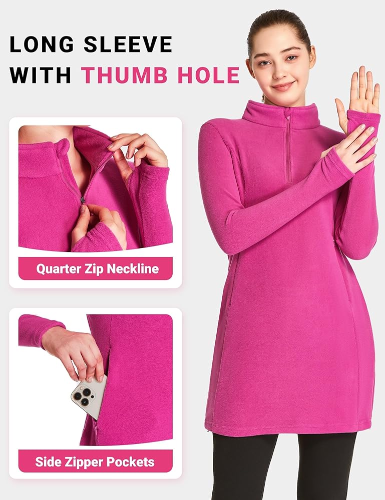 • تصميم مريح - خط رقبة بسحاب 1/4 لسهولة الارتداء والخلع وتبديد الحرارة؛ طوق واقف يزيد من الدفء؛ تساعد فتحات الإبهام على إبقاء الأكمام في مكانها وتحبس الدفء.