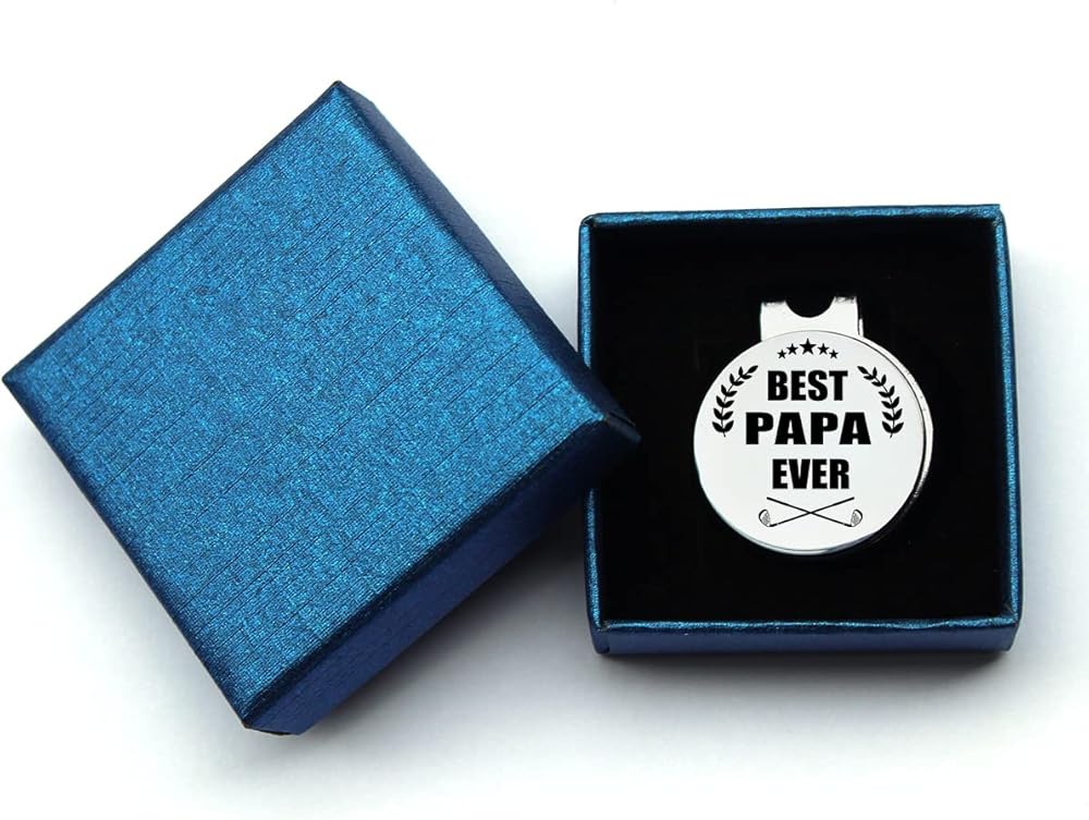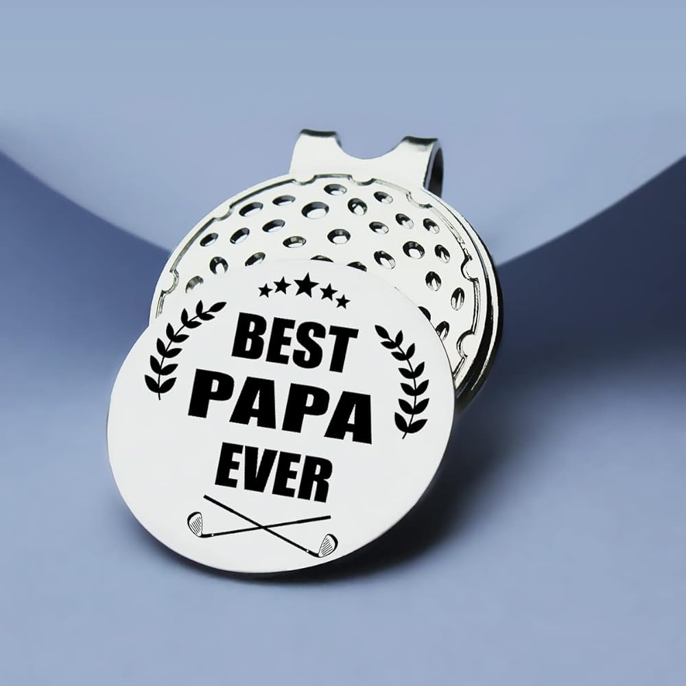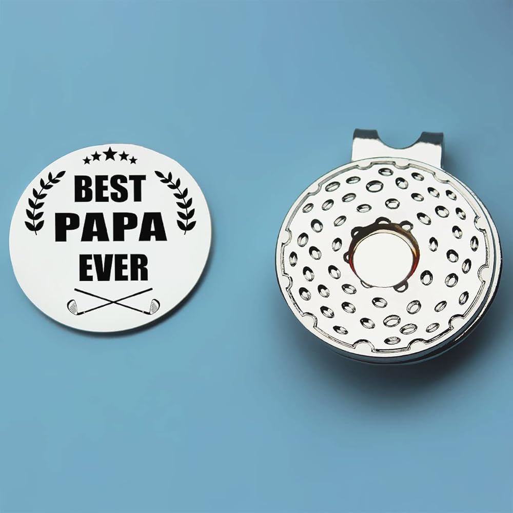 علامة كرة جولف TSUYAWU Best Papa Ever - علامة جولف مضحكة مع مشبك قبعة مغناطيسي هدية مبتكرة للجولف - هدايا إكسسوارات الجولف لمحبي الجولف من Papa Grandpa Golf للرجال