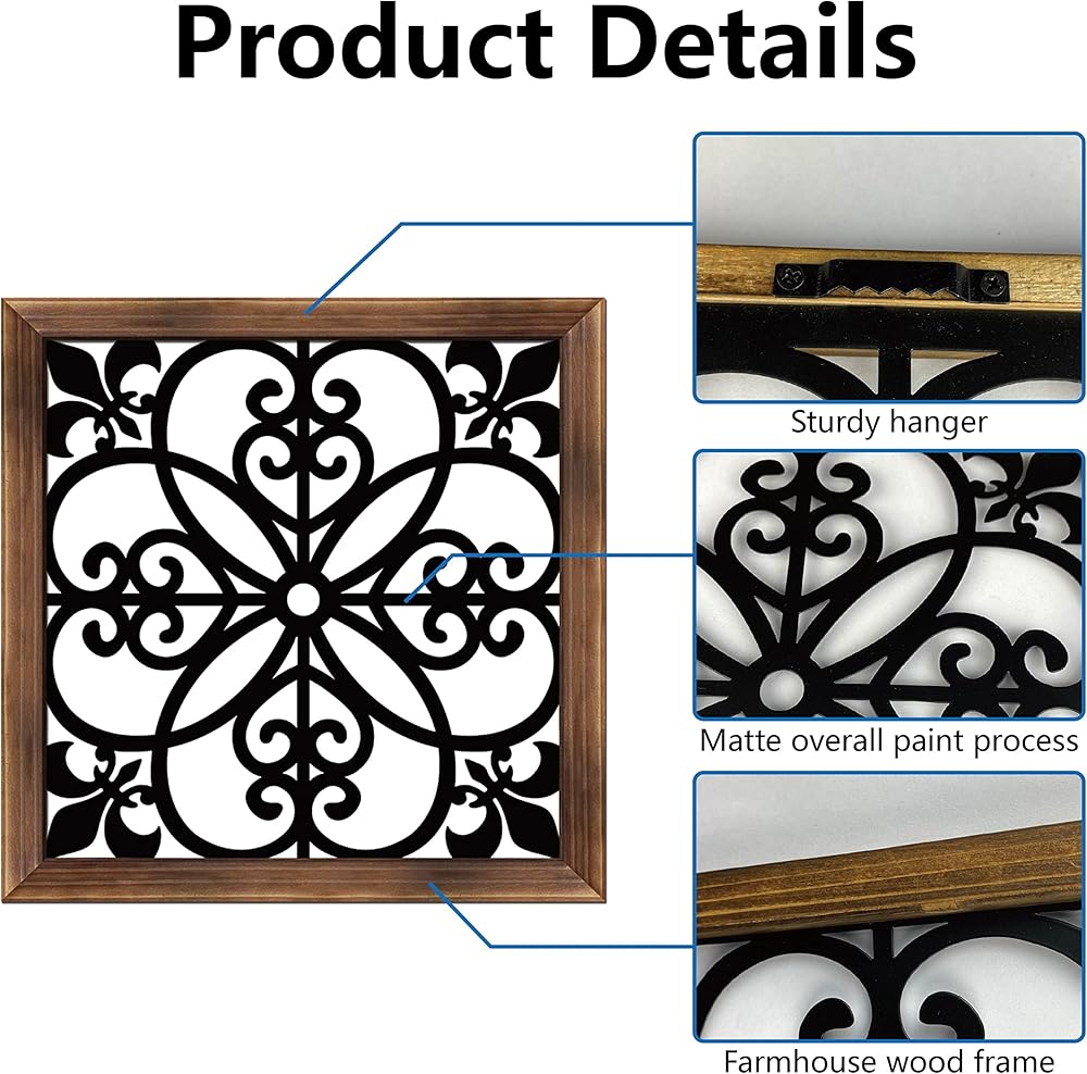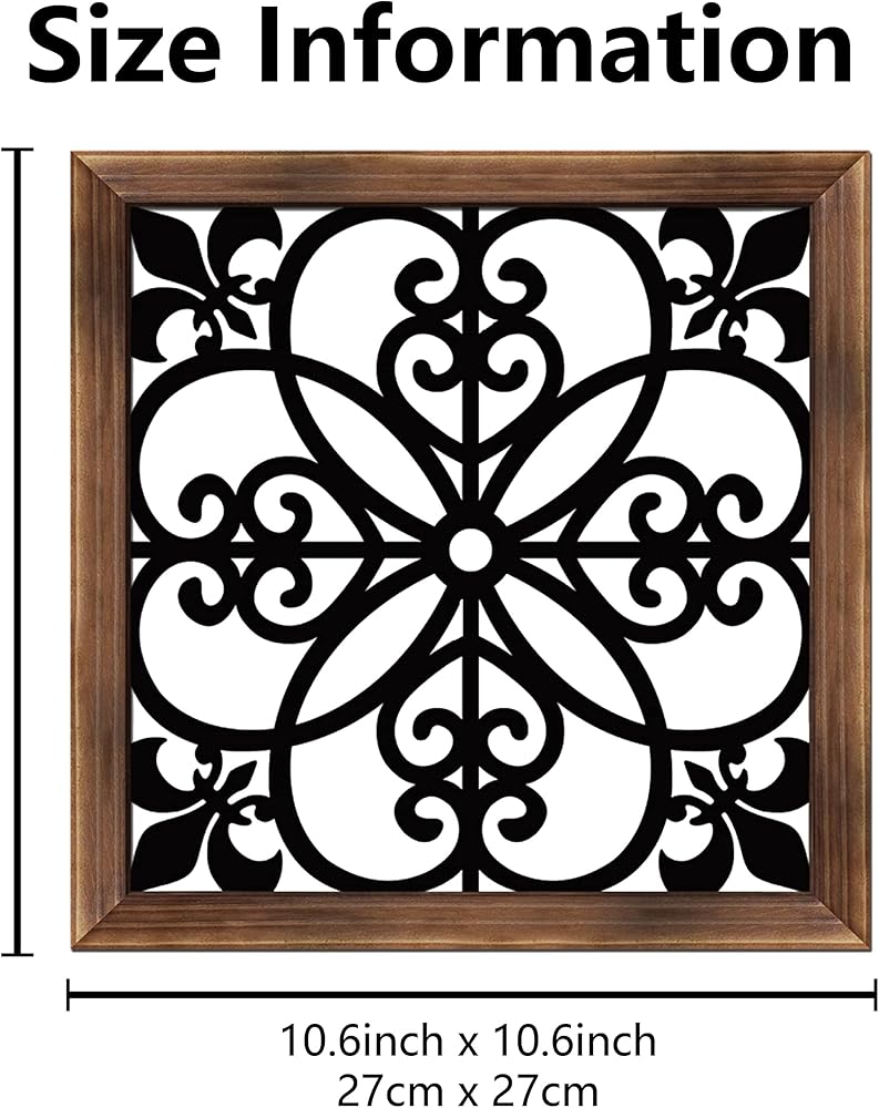⚜️【تصميم كلاسيكي】يحيط التصميم الهندسي بإطار خشبي مصنوع من خشب النار، مما يضفي مظهر مزرعة ريفية فيكتوريا على هذا الفن الجداري الريفي. مزيج من الخشب المتعثر والحديد الأسود المطاوع يمنح هذه القطعة الجدارية مظهرًا عتيقًا وعتيقًا.