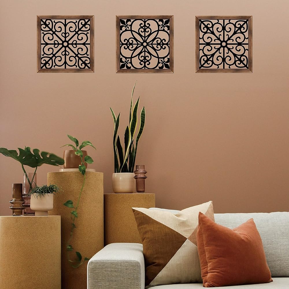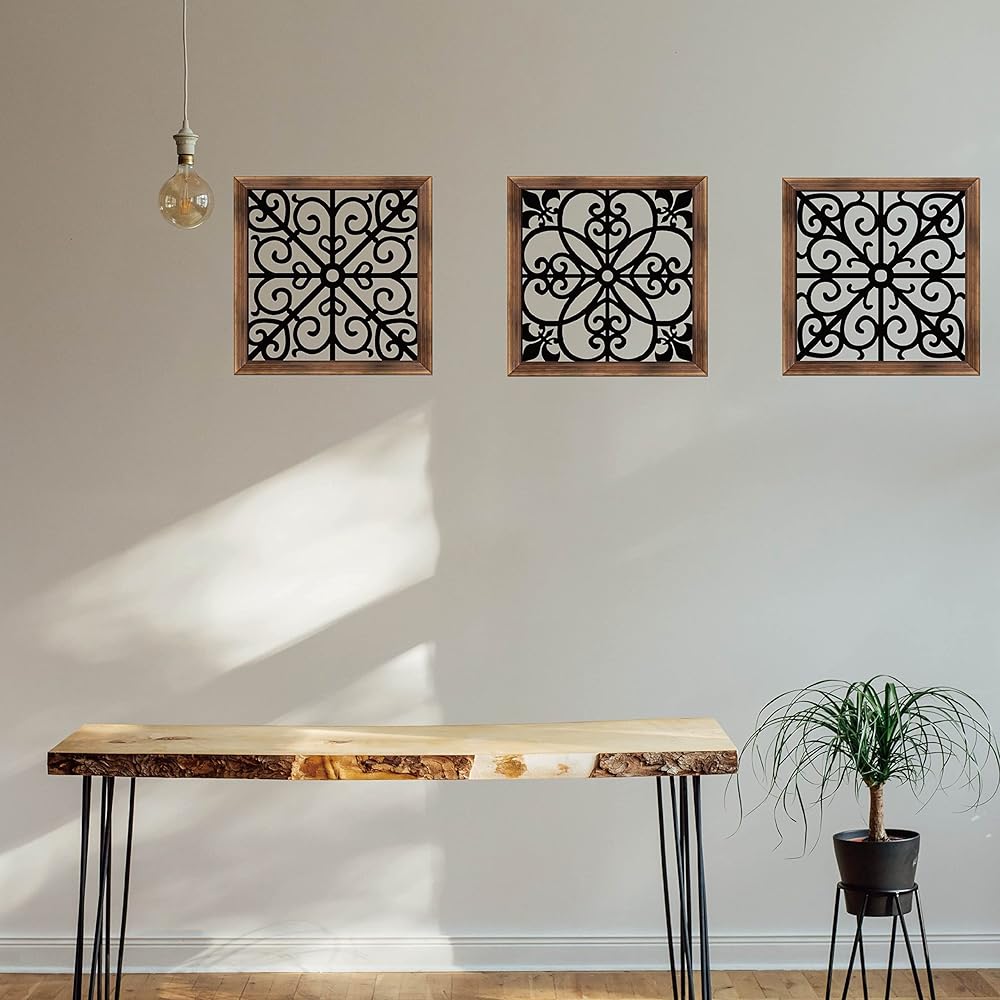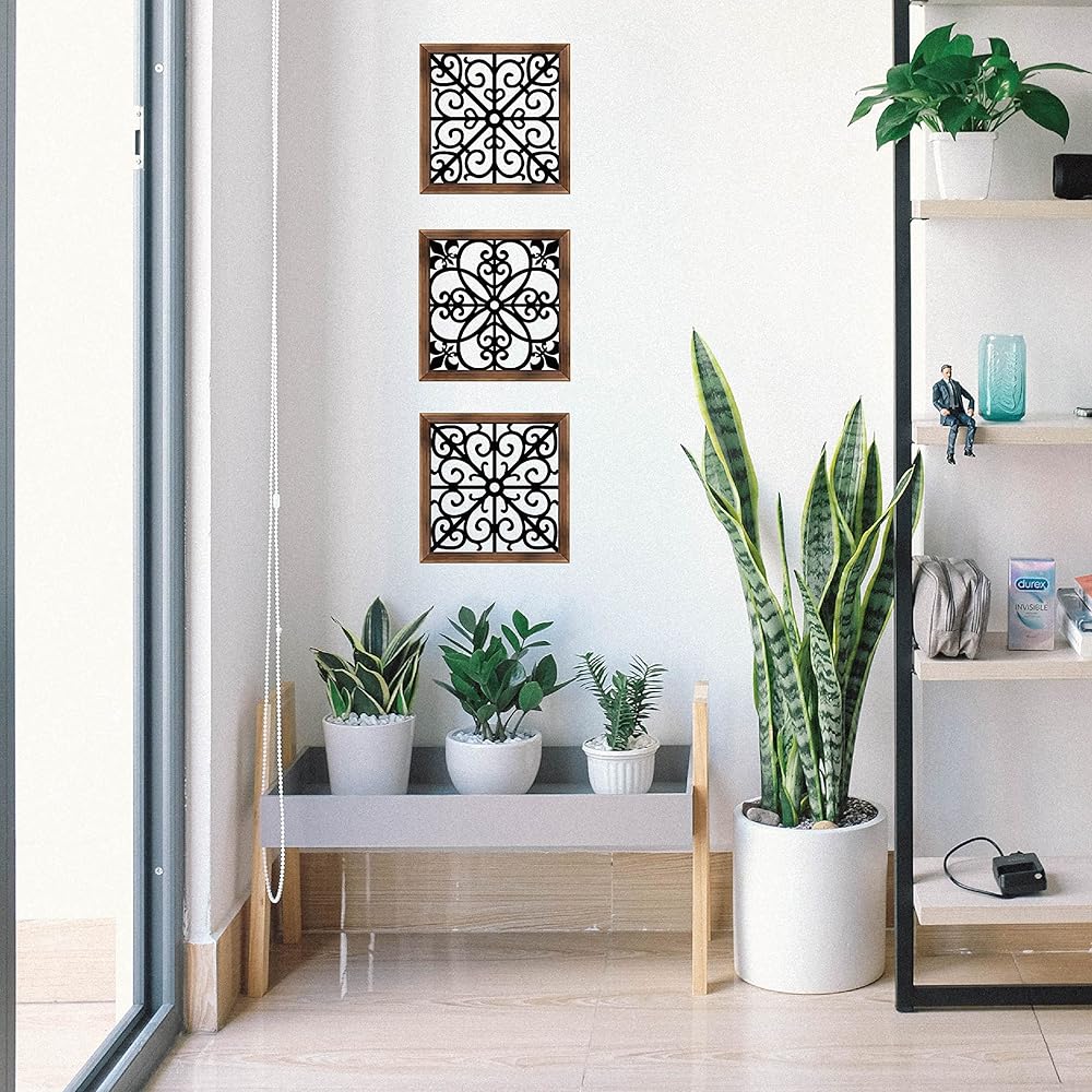 bgctm 3 حزمة ريفي جدار ديكور مربع جدار الفن المعدني الهندسي مع إطار خشبي مزرعة شنقا الديكور لشقة المنزل، غرفة نوم، غرفة المعيشة، النوم، ريفي شنقا ديكور الحائط للمربع