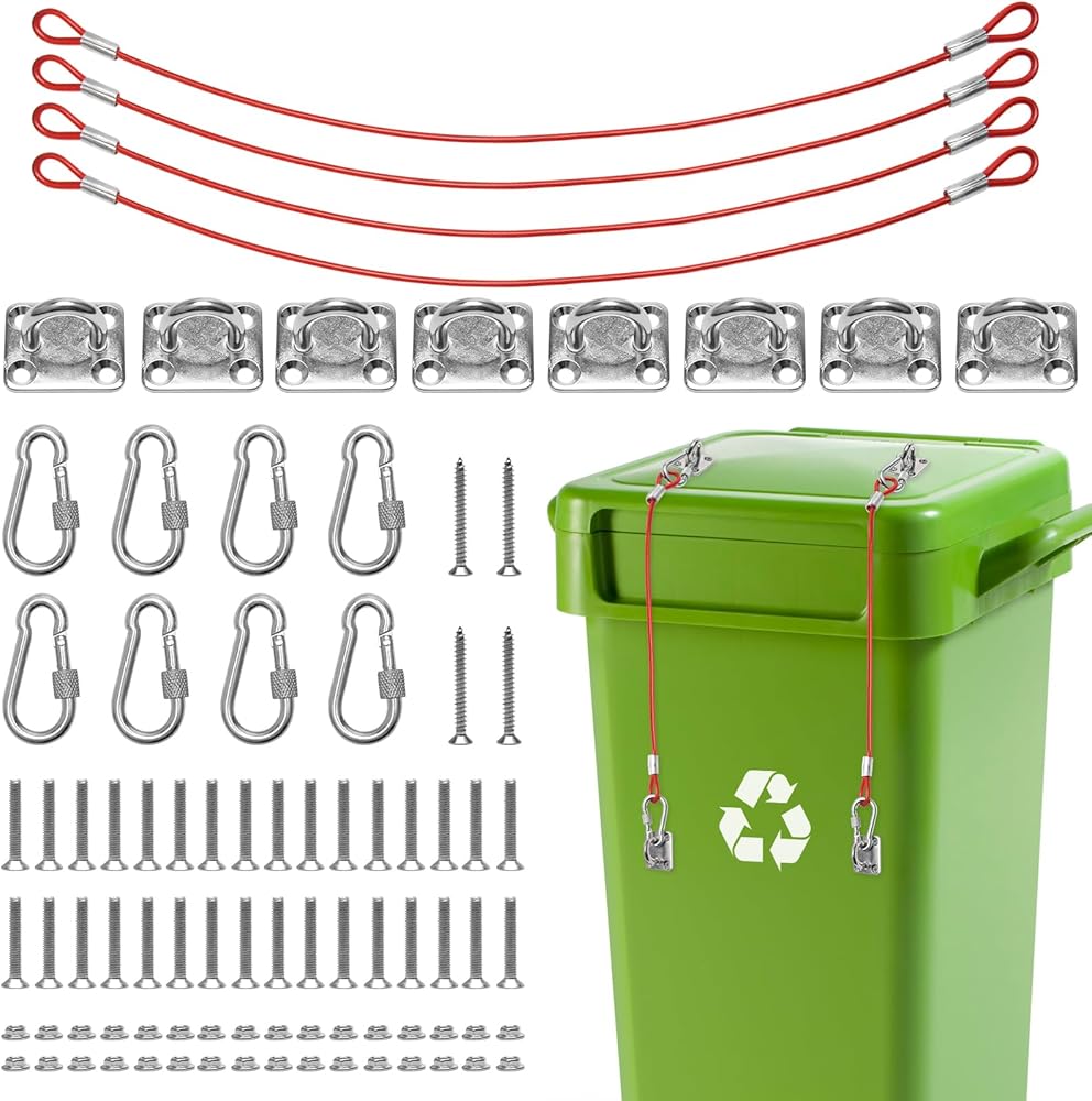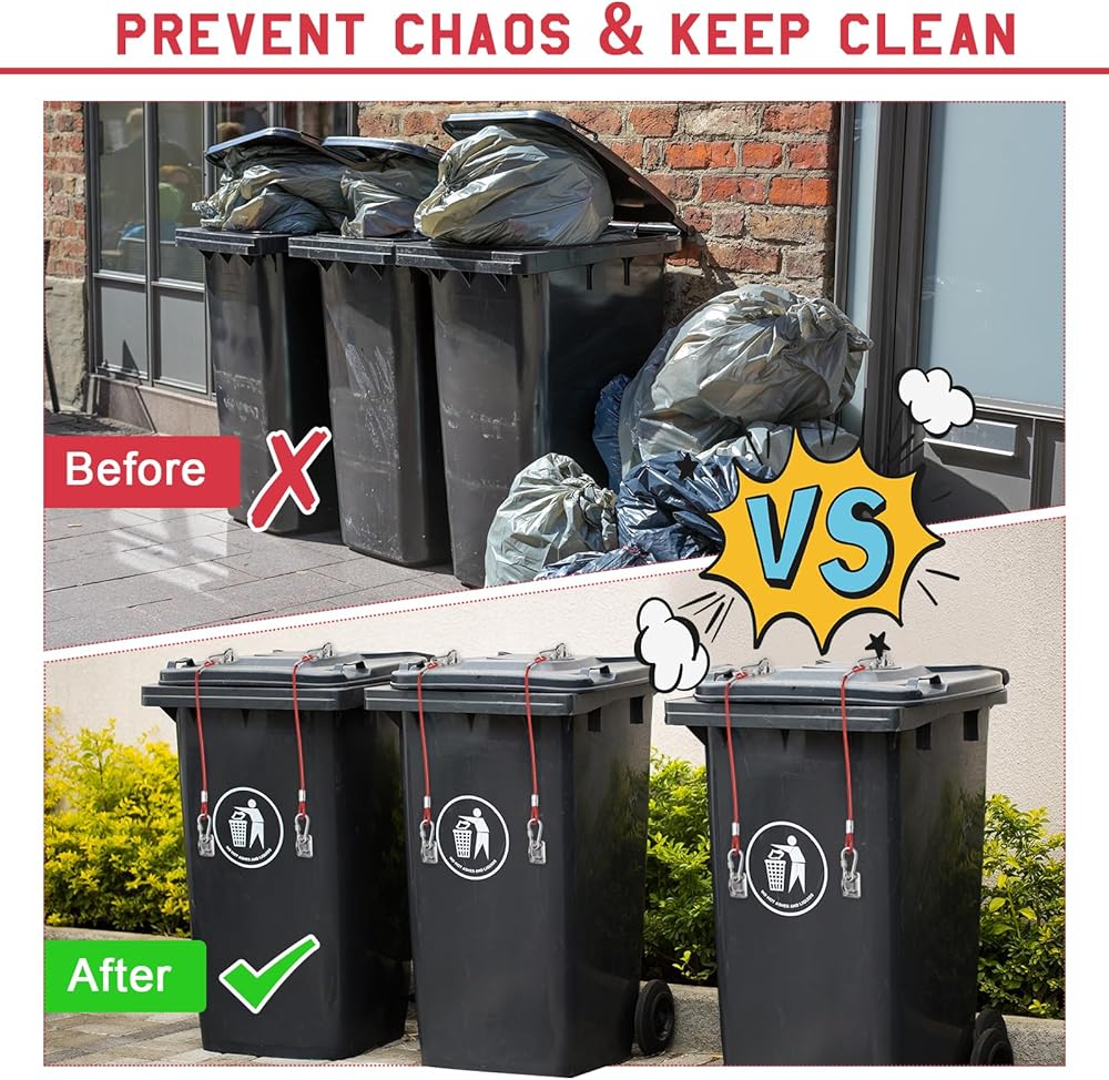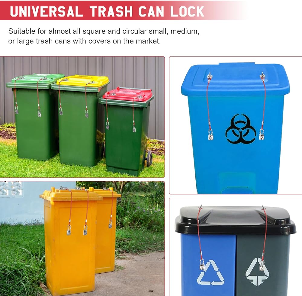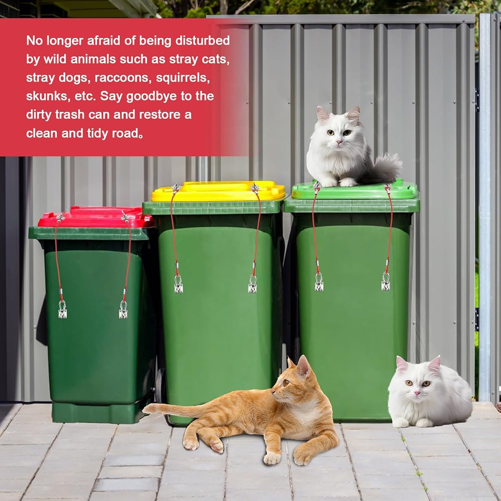 سلة المهملات قفل 4 حزمة، يمكن قفل القمامة للحيوانات تتوقف عن البحث عن سلة المهملات شديدة التحمل، قفل غطاء معدني عالمي لعلب القمامة في الهواء الطلق مع حبل سلك مطلي بالنايلون