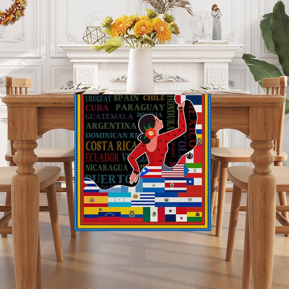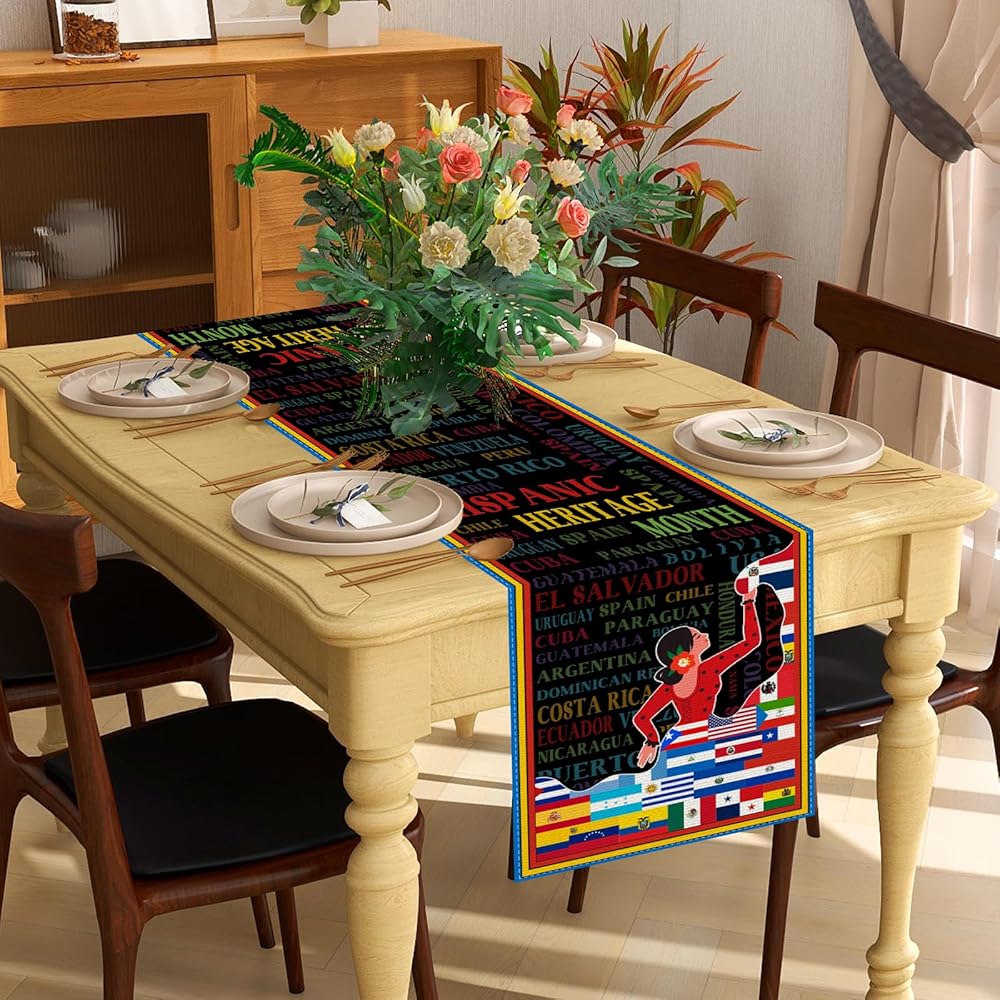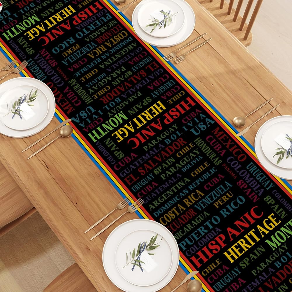 الكتان الوطني التراث الإسباني شهر الجدول عداء لاتيني التراث شهر أمريكا اللاتينية أعلام الزينة واللوازم للمنزل المطبخ غرفة الطعام الجدول