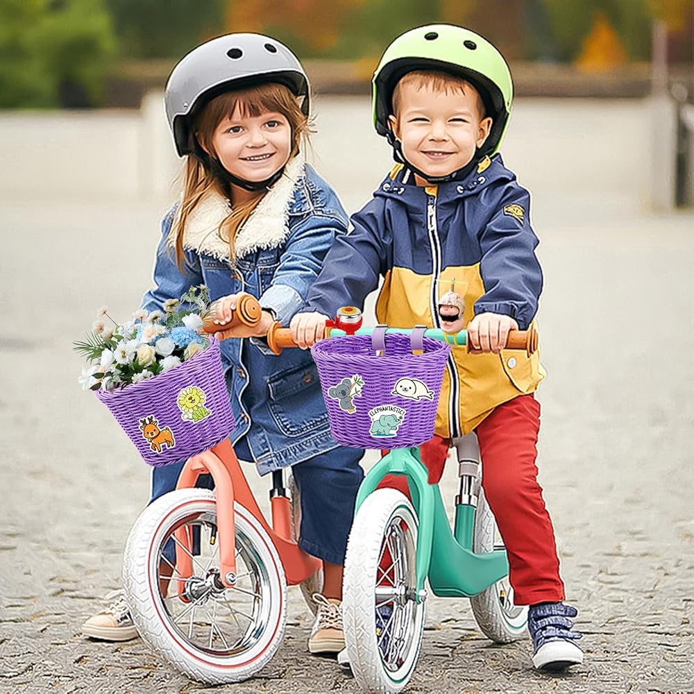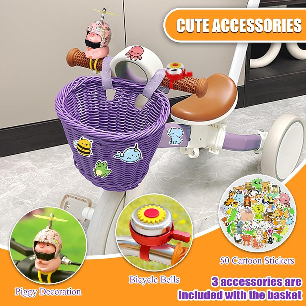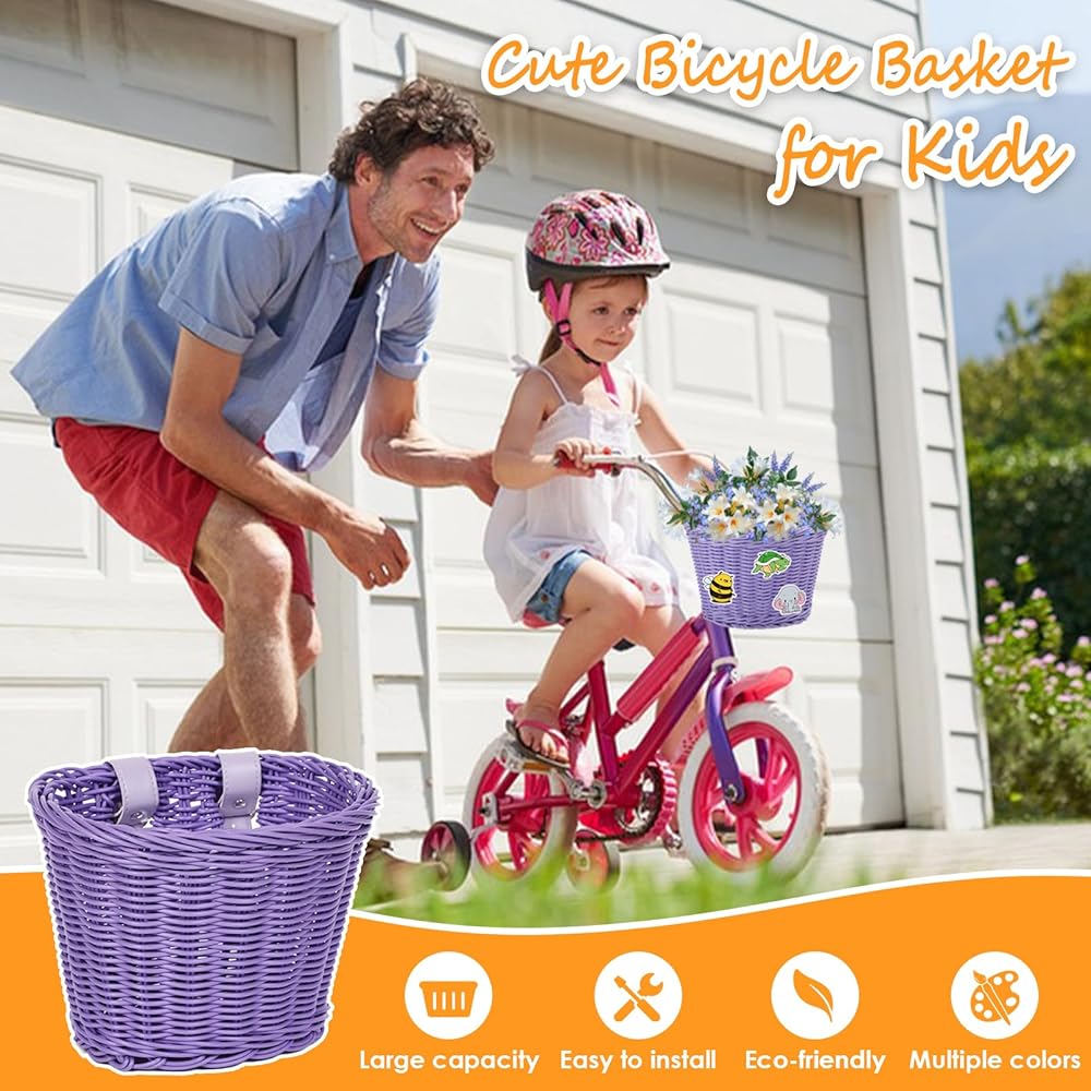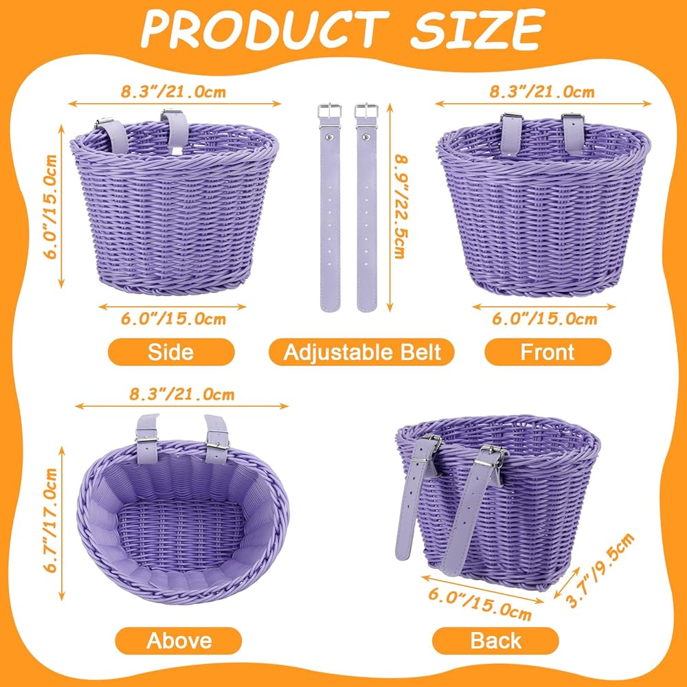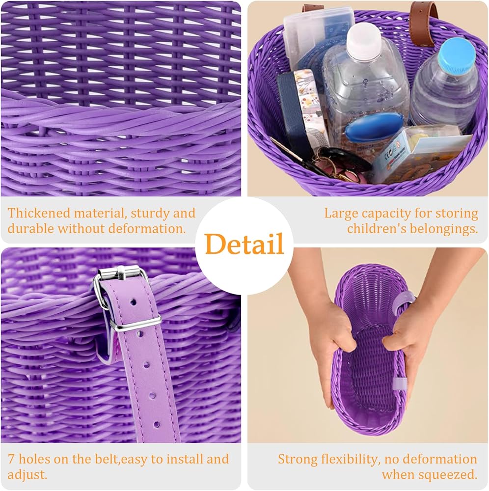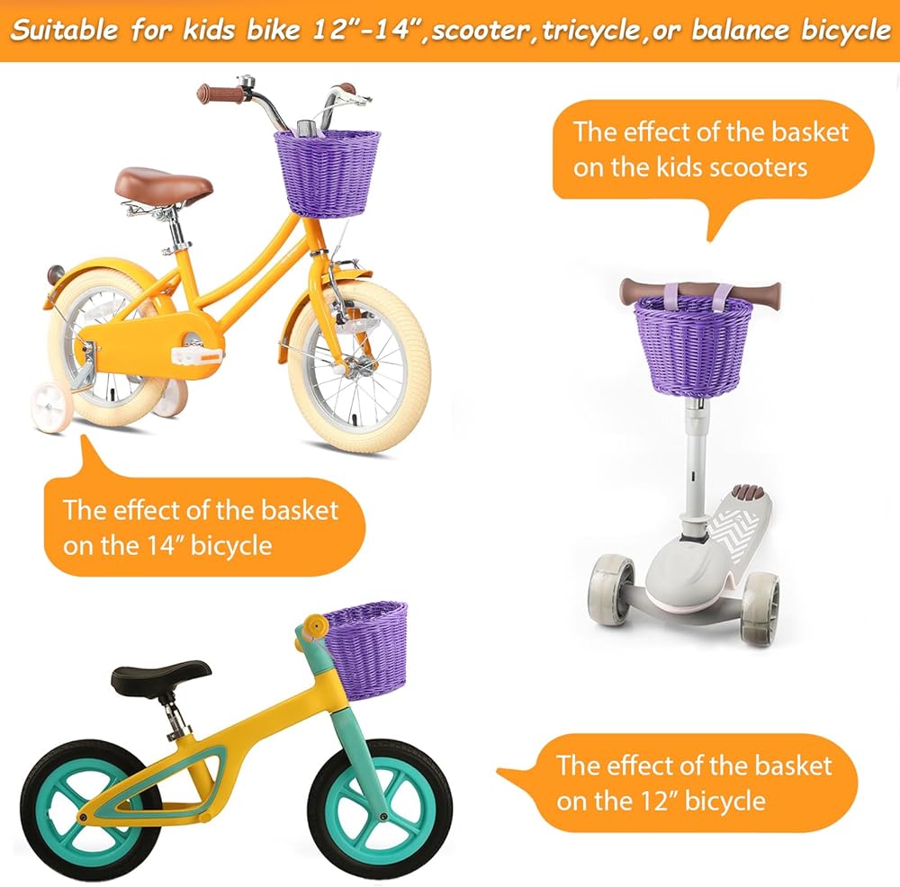 • 【GREAT GIFT】Our kids bike baskets are available in brown, purple,pink and milk white, adding a practical and beautiful accessory to children's bicycles, allowing children to choose their favorite colors to match their bicycles, Baskets are widely used for boys and girls trolleys, scooters, balance cars and other children's vehicles. Good gift idea for girls boys birthday party.