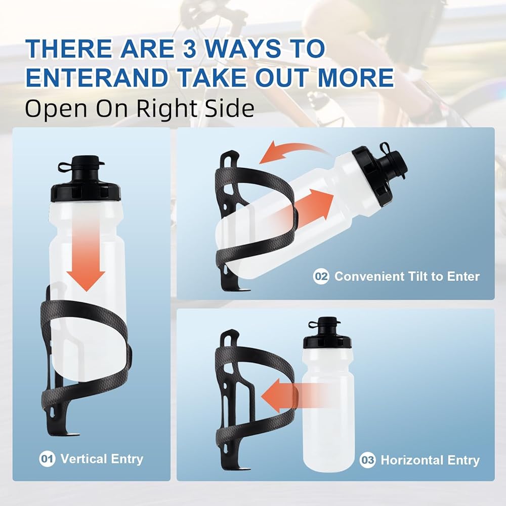 【ملاءمة آمنة】: تتميز أقفاصنا بإمساك آمن، مما يضمن بقاء زجاجة المياه الخاصة بك في مكانها حتى أثناء الركوب الأكثر وعورة.