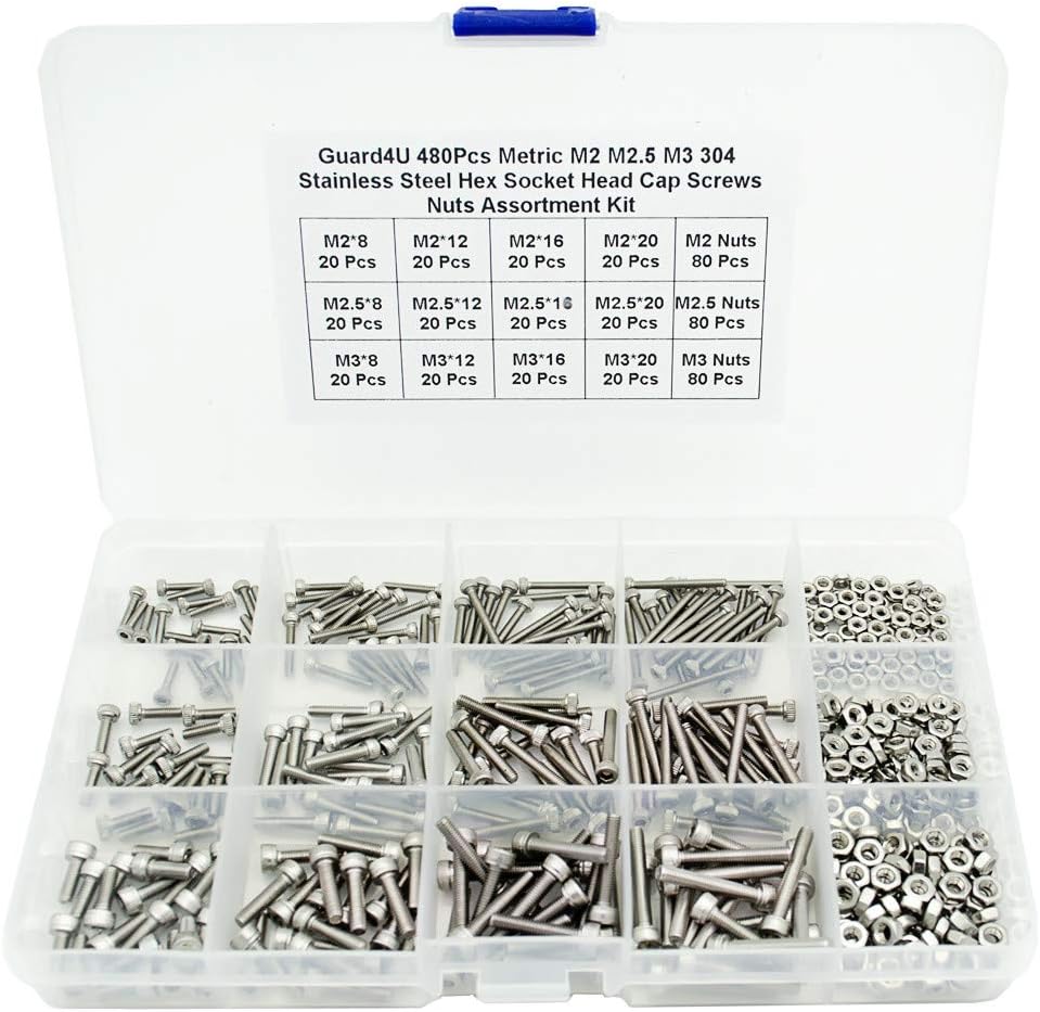 Guard4U 480Pcs Metric M2 M2.5 M3 304 Stainless Steel Hex Socket Head Cap Screws Nuts Assortment Kit
