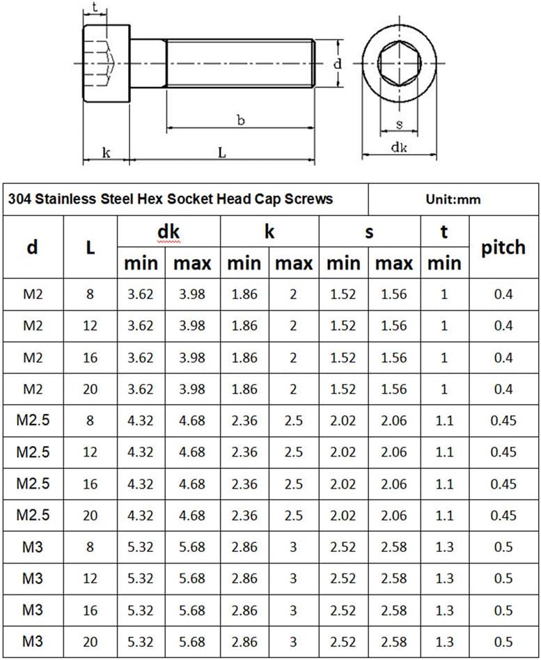 Socket Head Cap Screws M2.5x20mm: 20Pcs