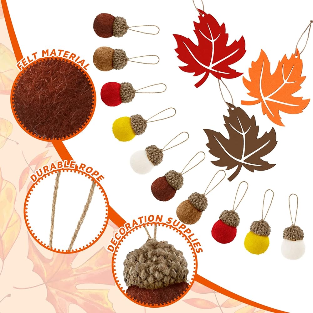 Delicate design: these cute decorations are inspired by acorns and maple leaves in autumn; Acorns are round and lovely, lively and lifelike, and maple leaves are hollowed out with exquisite design and soft material, suitable for different kinds of matching decoration