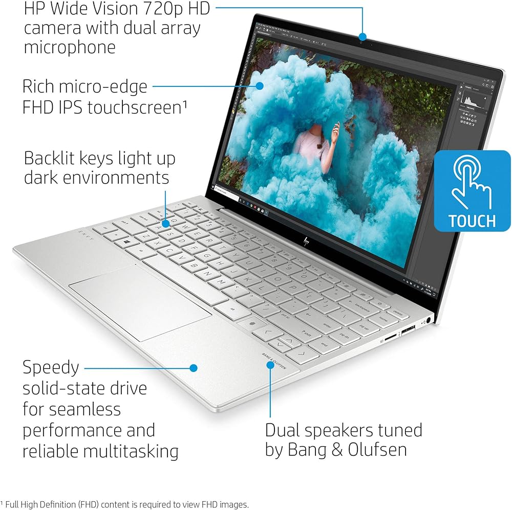 صديق للبيئة: مصابيح خلفية منخفضة من الهالوجين وخالية من الزئبق، وزجاج عرض خالٍ من الأرسينيك في هذه شهادة ENERGY STAR(R) ، ENVYE فضي مسجل. اجعل رؤيتك للحياة مع معالج فائق السرعة: منصة Intel(R) Evo(TM) مدعومة من الجيل 11 Intel(R) Core(TM) i7-11 165G7. معالج رباعي النواة تصل إلى 4.7 جيجا هرتز مع تقنية تعزيز تربو من إنتل (R) شاشة لمس بديعة: 13.