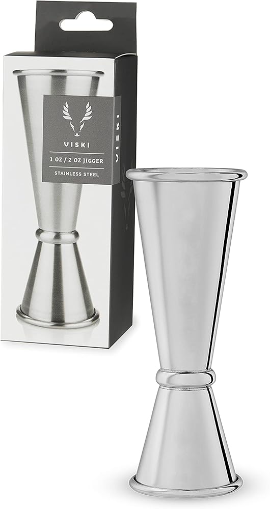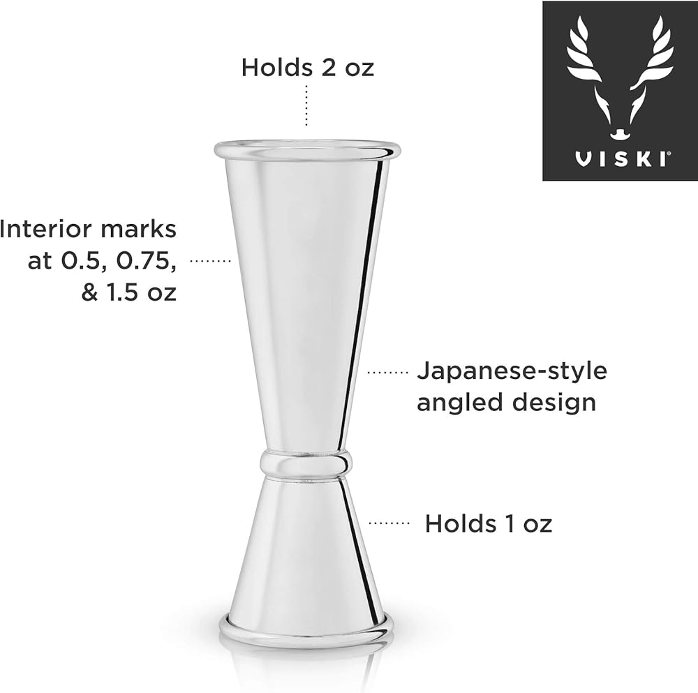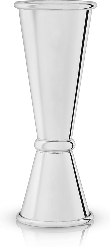 Cast in lustrous stainless steel with a band to separate its one- and two-ounce sections, the interior of each side of our professional Japanese-style double jigger is scored with pinpoint mixology measurements (1.5, 0.75 and 0.5 ounces).