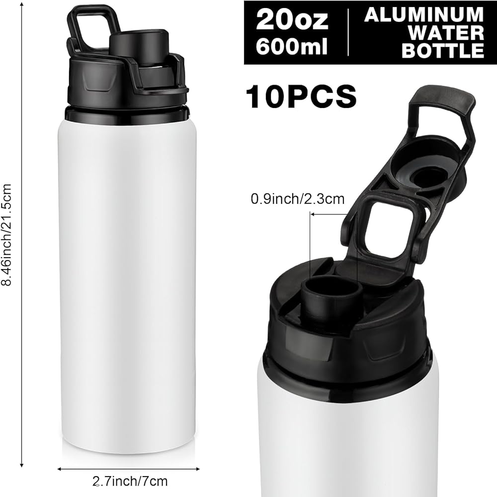 10 قطع من زجاجات المياه الفارغة المصنوعة من الألومنيوم من هانيداك، زجاجات رياضية معدنية بيضاء، زجاجات رياضية كبيرة قابلة لإعادة الاستخدام ومضادة للتسرب، نحيفة ومستقيمة بالضغط الحراري، مع مقبض لمستلزمات السفر (25 أونصة)