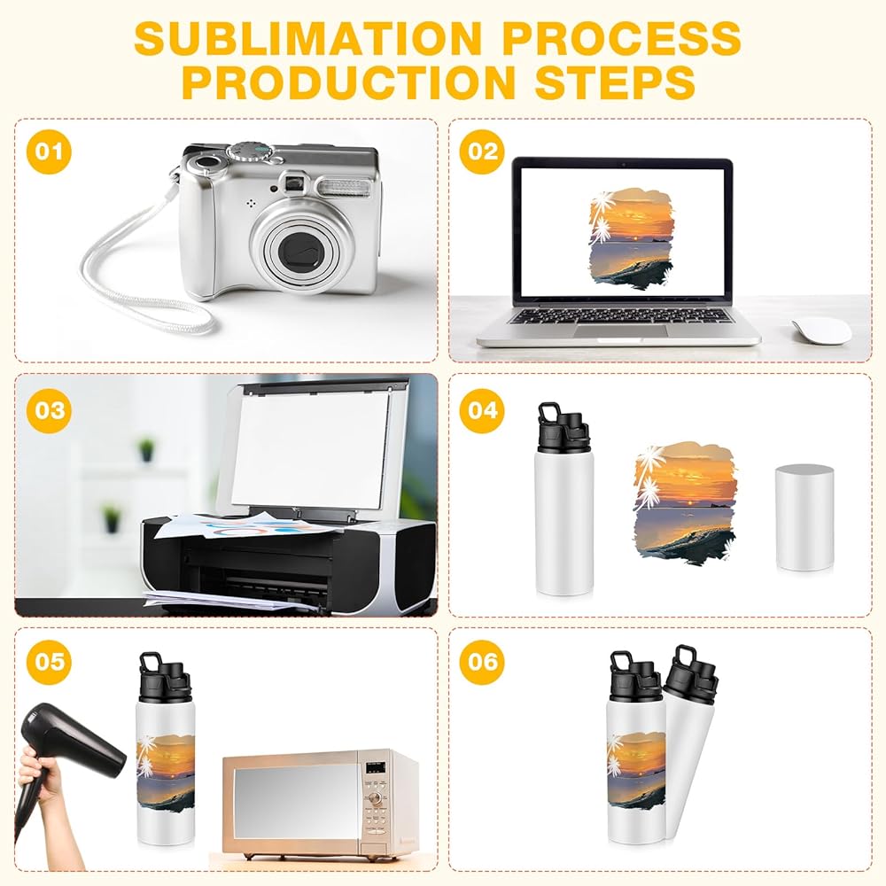 ملاحظة ودية: زجاجة المياه التي نقدمها تدرك اعتبارات سلامة المواد؛ لقد صممنا فم الزجاجة باستخدام البلاستيك، وهو غير مقاوم لدرجات الحرارة المرتفعة؛ يرجى ملاحظة أنه يوصى بعدم وضع فم الزجاجة داخل آلة التسامي للتأكد من طول عمرها وسلامتها