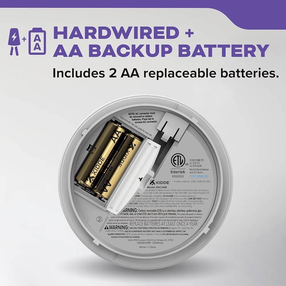 • HARDWIRED & 2 AA BATTERY BACKUP (Included): Operates on 120V AC wiring (installed in the ceiling) with 2 AA alkaline batteries that provide battery backup coverage during power outages.
