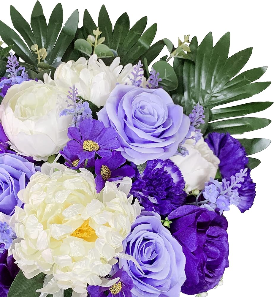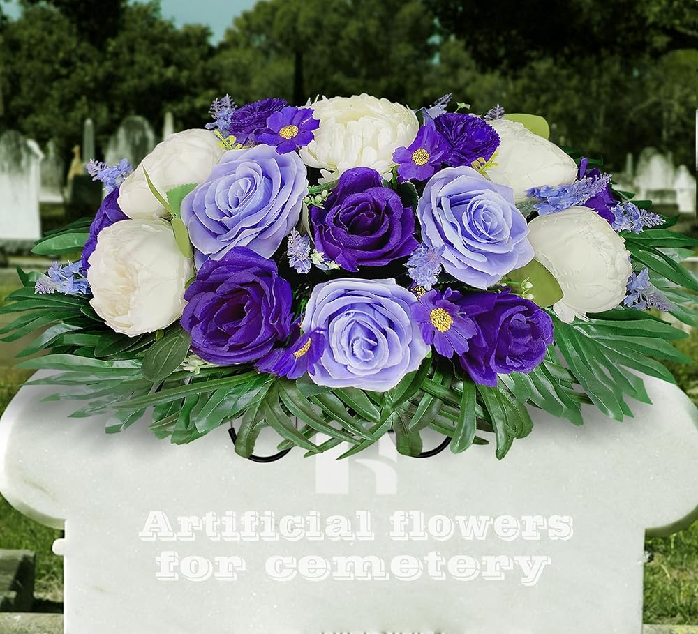 سرج زهرة القبر للقبر، لون غير ينزف، زهور المقبرة الاصطناعية - ترتيب مزيج الفاوانيا الوردية والفاوانيا البيضاء، ديكور قبر خارجي