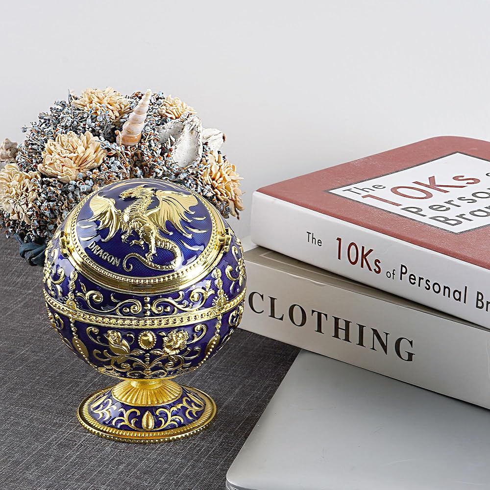 • VERSATILE: This dragon print metal ashtray can also used as small storage box or cone incense burner, suitable for home, patio, outdoor parties or clubs.