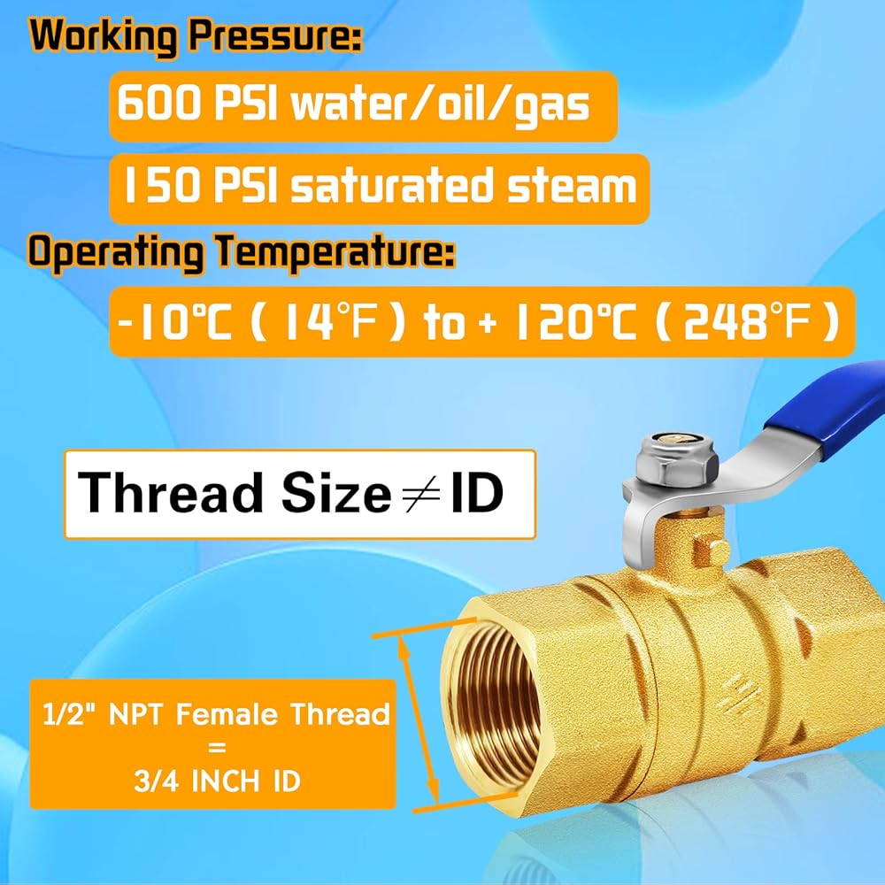 [Quality Guarantee] Each shut off ball valve individually tested for maximum safety NPT connections, if you have any questions after you receive it, please feel free to contact us, we will give you a satisfied reply in time.