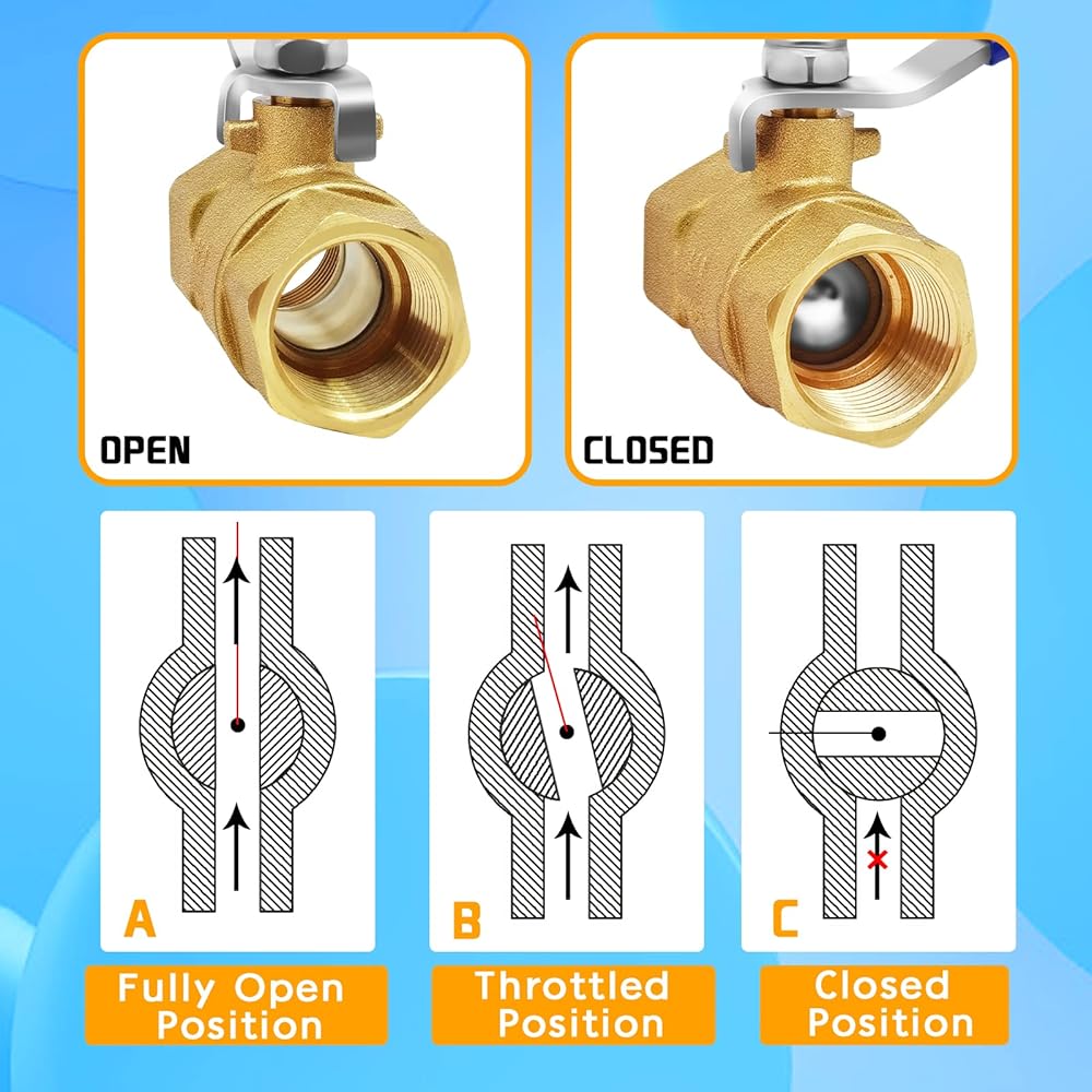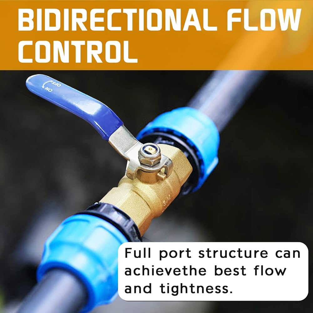[Easy to Use] The lever handle mounted on the top is used to fast 1/4 turn close and open the ball valve, easy control of water flow. The inner spherical seal is made of PTFE for maximum stability and durability even at very high temperatures.
