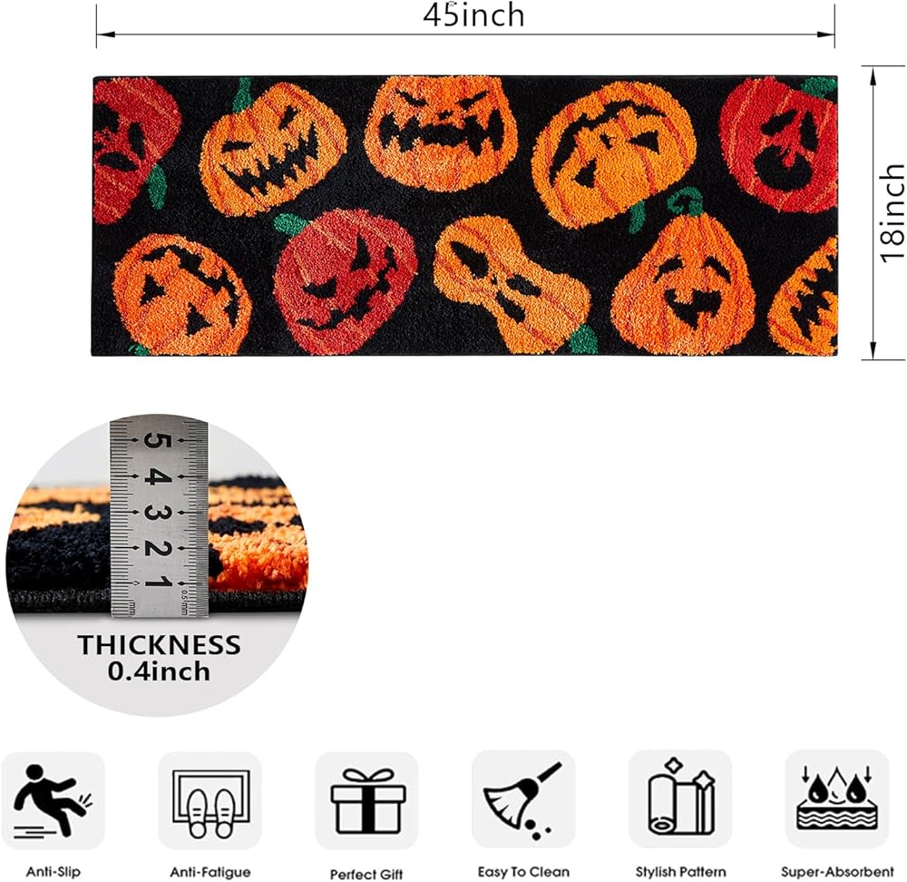 سجادة عداء الحمام للهالوين الخريفية، سجادة غير قابلة للانزلاق، 18 × 45 لطيف برتقالي الخريف ملون، سجادة حمام طويلة جدًا ناعمة، سجادة عداء الهالوين القوطية المخيفة لمدخل المطبخ
