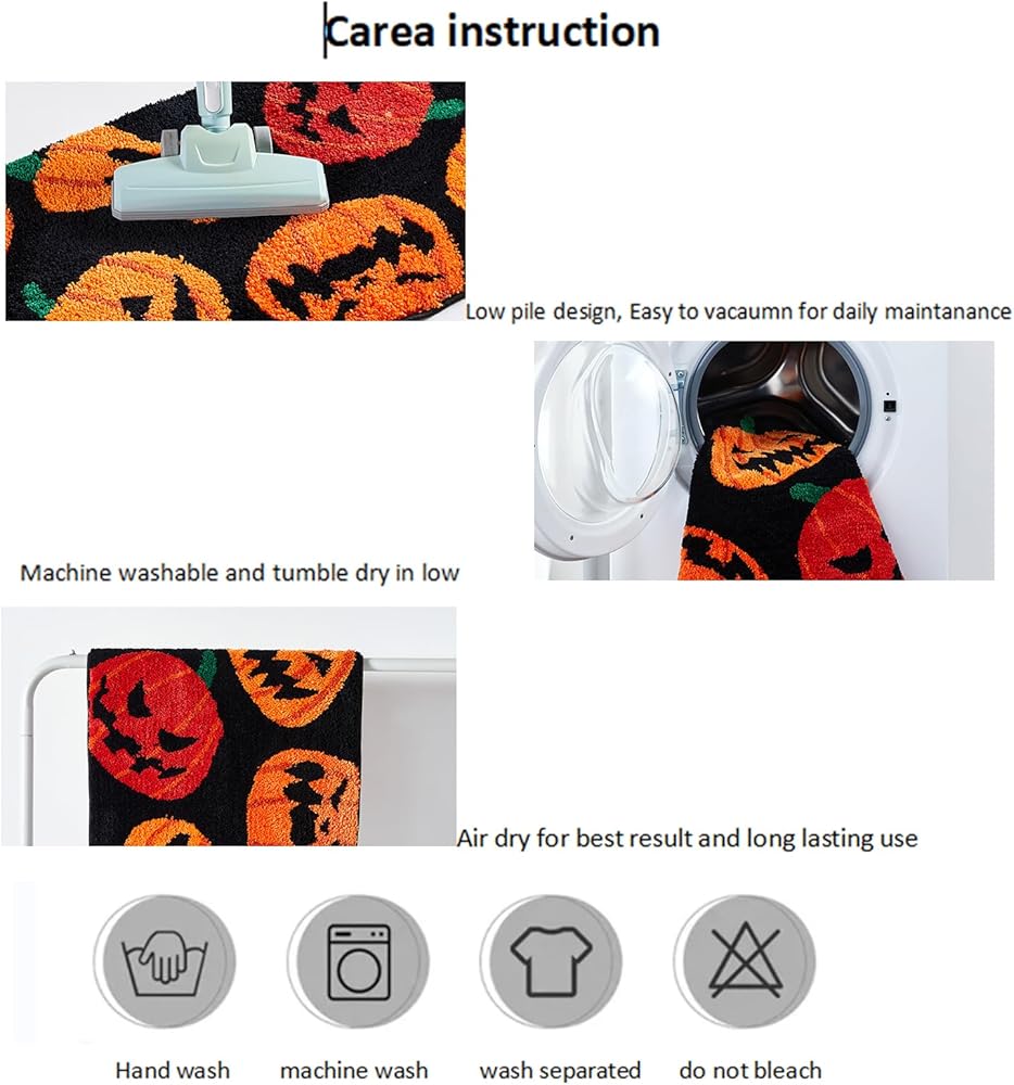 Non Shedding -- The tight weaving process ensures that the vintage Halloween shower mat in this area is not easy to fall off and the edges are not easy to fall apart.