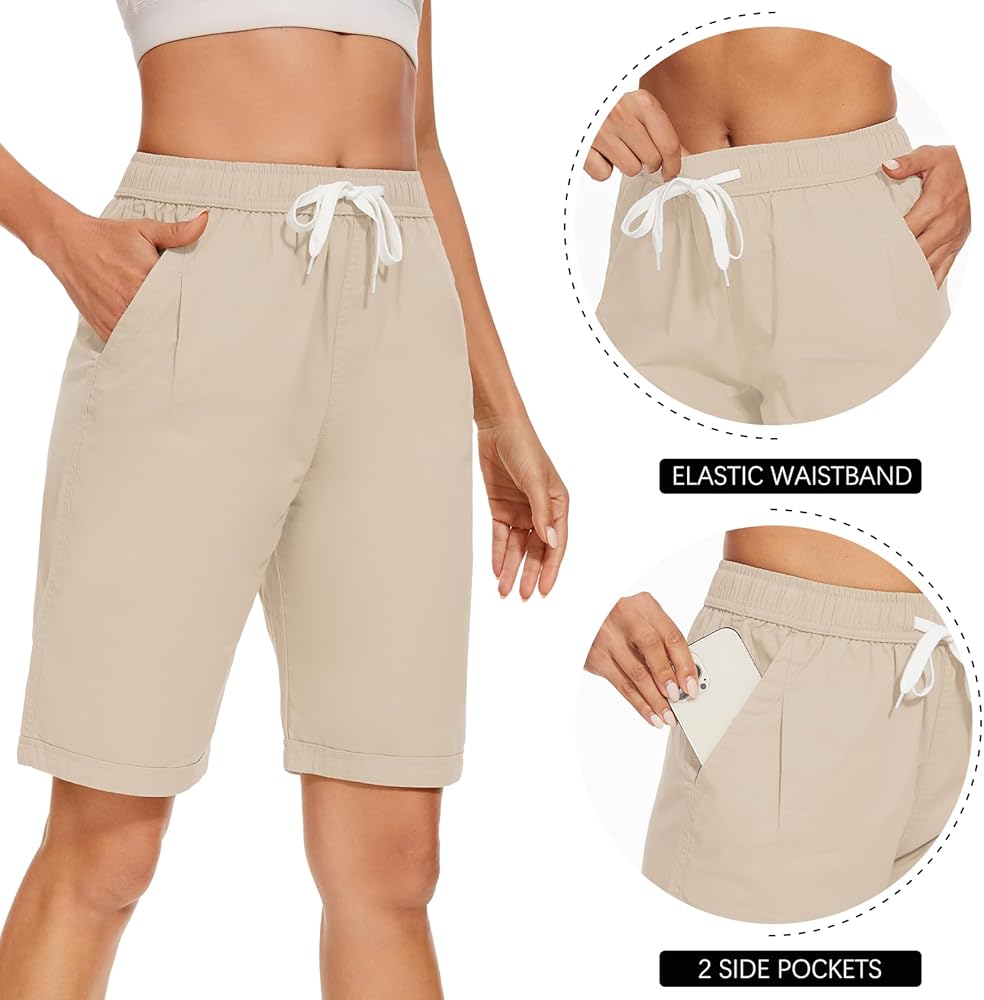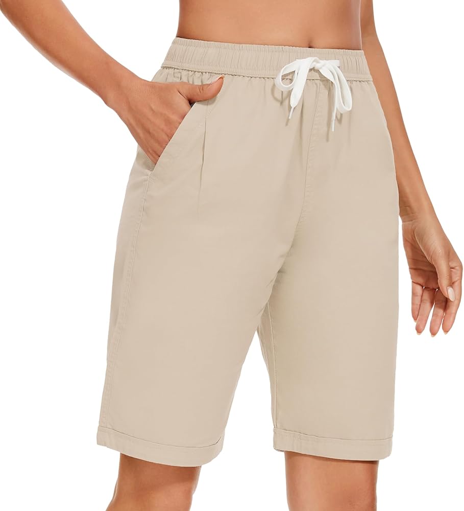 شورت برمودا قطني: شورت نسائي بطول الركبة مصنوع من القطن بنسبة 100%، القماش خفيف الوزن، صديق للبشرة، ناعم، مسامي، ماص للرطوبة، يبقيك منتعشًا ومرتاحًا أثناء الترفيه الصيفي والأنشطة الخارجية