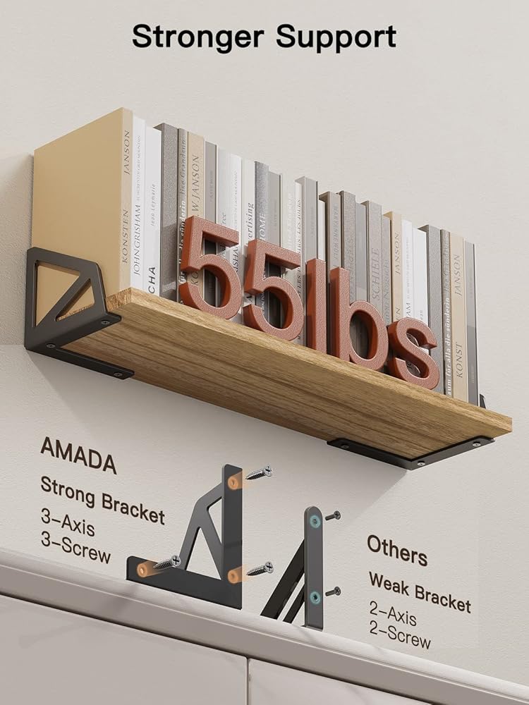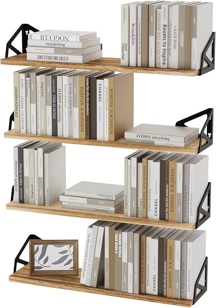 AMADA HOMEFURNISHING Floating Shelves Set of 4, Wall Shelves for Storage & Wall Decor, Bookshelves Wall Mounted with Metal Bracket, Rustic Wood