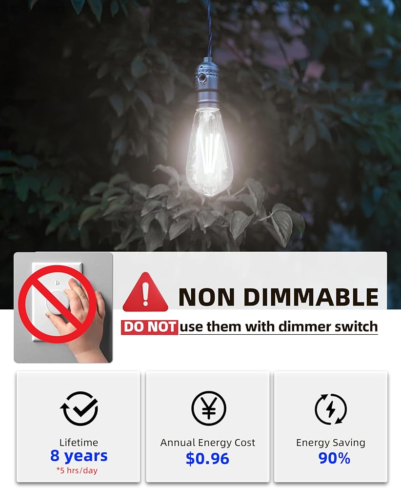 [مظهر عتيق ونمط أنيق] اجعل منزلك مميزًا مع هذه المصابيح العتيقة الجذابة. زجاج شفاف كريستالي وتصميم فتيل فريد مستوحى من إضاءة أوائل القرن العشرين، مصابيح إديسون غير قابلة للتعتيم من ماستري مارت 60 وات تضيف لمسة من الرقي إلى ديكور منزلك. غير خافت للضوء، وليس للاستخدام مع مفاتيح التعتيم.