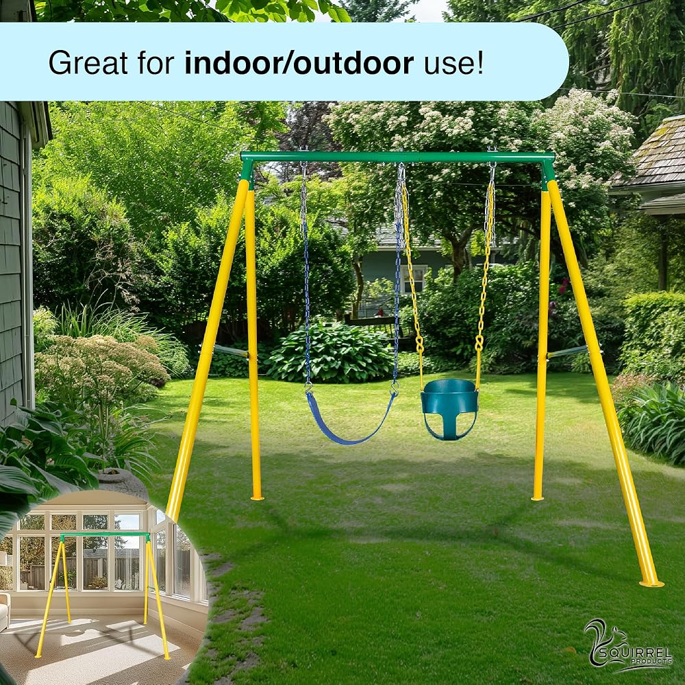 هيكل قوي: مصنوعة من معدن عالي الجودة، تم تصميم مجموعة التأرجح شديدة التحمل هذه للبالغين لتحمل العناصر وتوفير متعة طويلة الأمد لأطفالك. يضمن الإطار المتين الثبات والأمان أثناء اللعب.