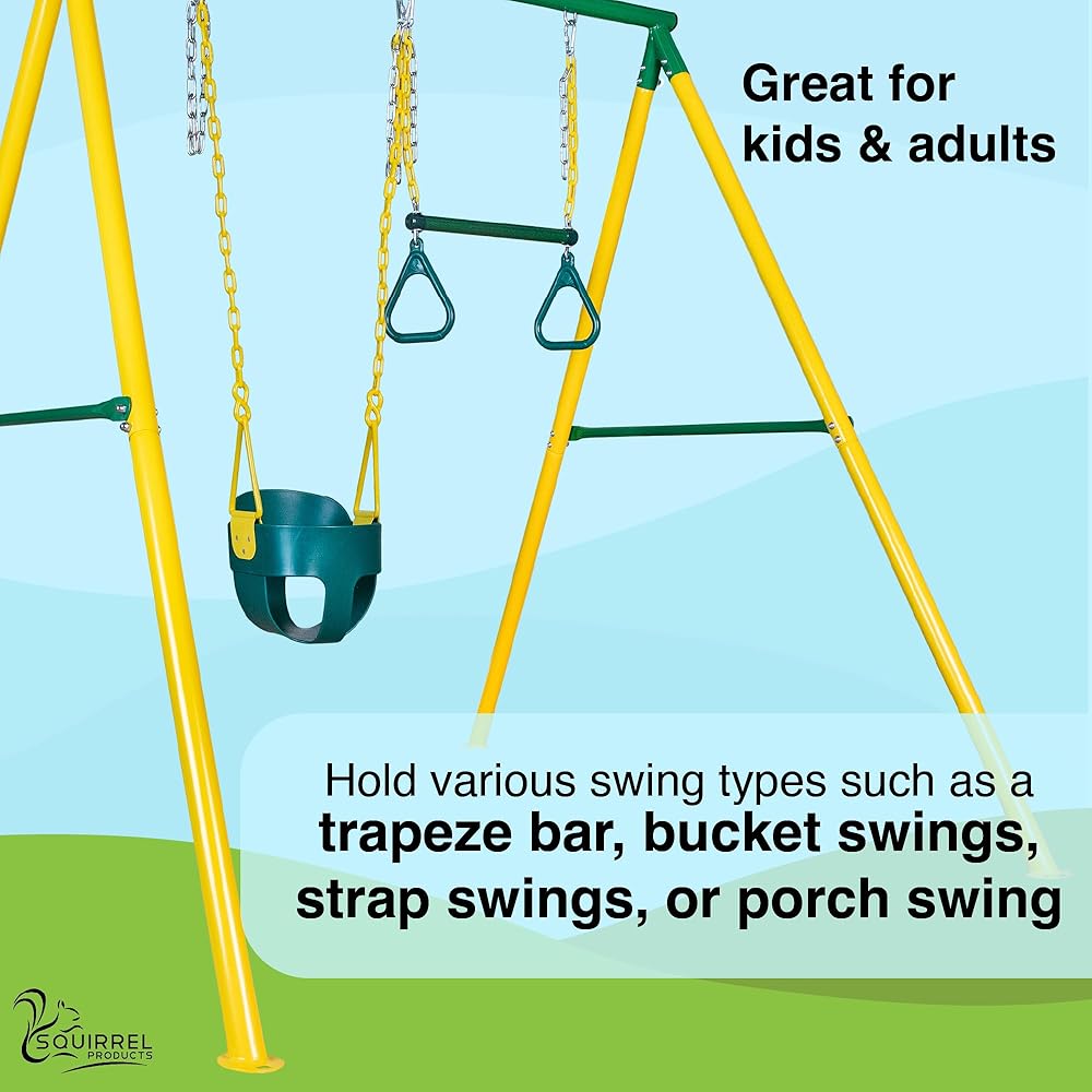 خيارات متعددة الاستخدامات: يمكن أن يستوعب إطار التأرجح هذا أنواعًا مختلفة من التأرجح مثل شريط الأرجوحة مع الحلقات، وأرجوحة الدلو، وحامل أرجوحة الشرفة، والمزيد، مما يوفر المرونة لتخصيص تجربة اللعب الخاصة بك.