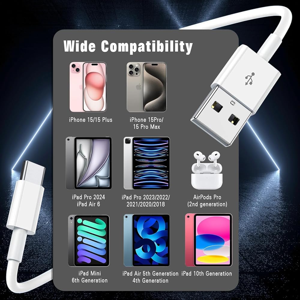 Perfect Compatibility:This car play cable connects to iPhone 15 All series, iPad 10th generation, iPad Pro 12.9-inch (3rd generation, 4th generation, 5th generation), iPad Pro 11-inch (1st generation, 2nd generation, 3rd generation), the new iPad Mini 6th generation, iPad Air 4th generation