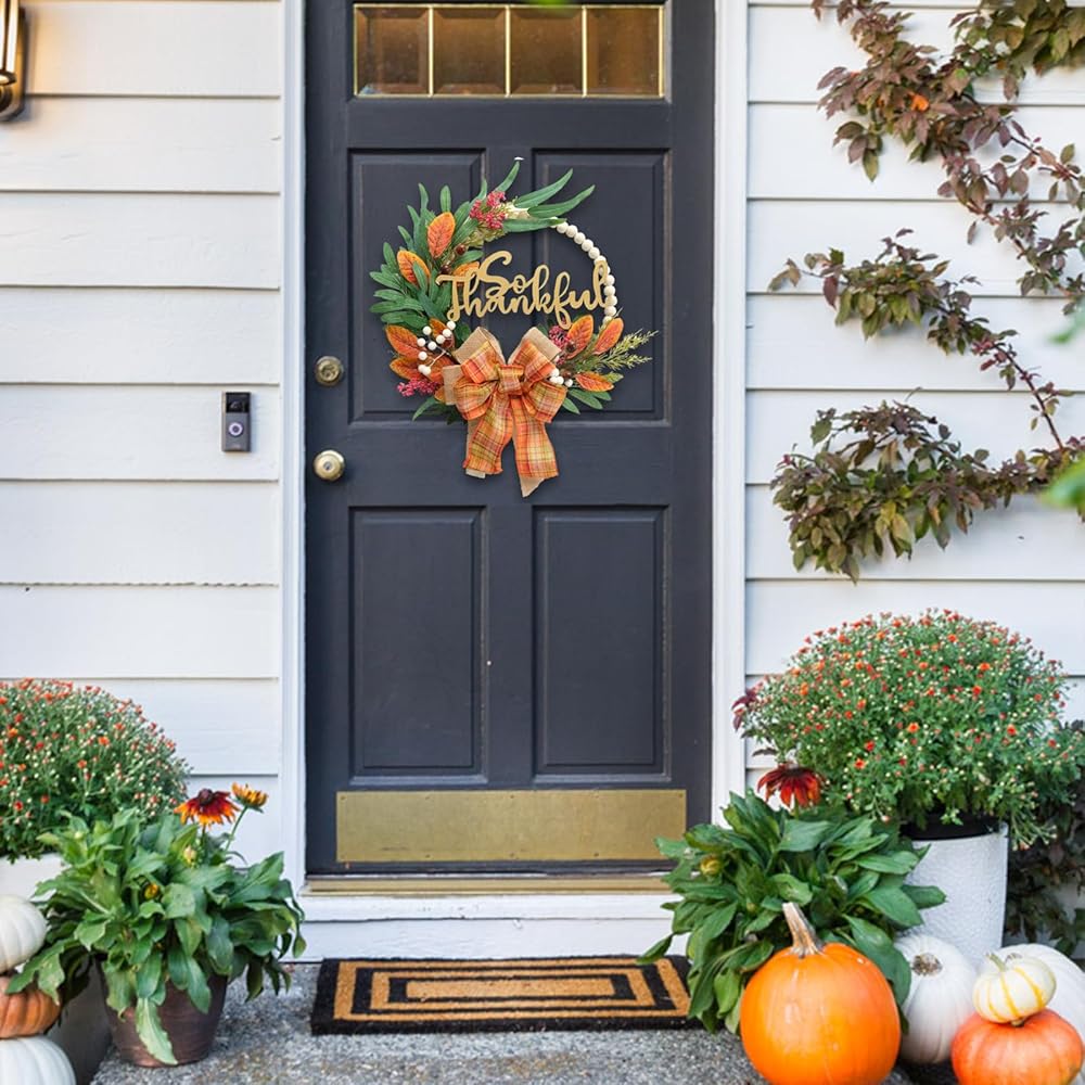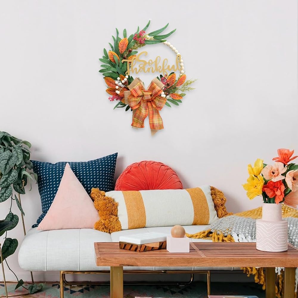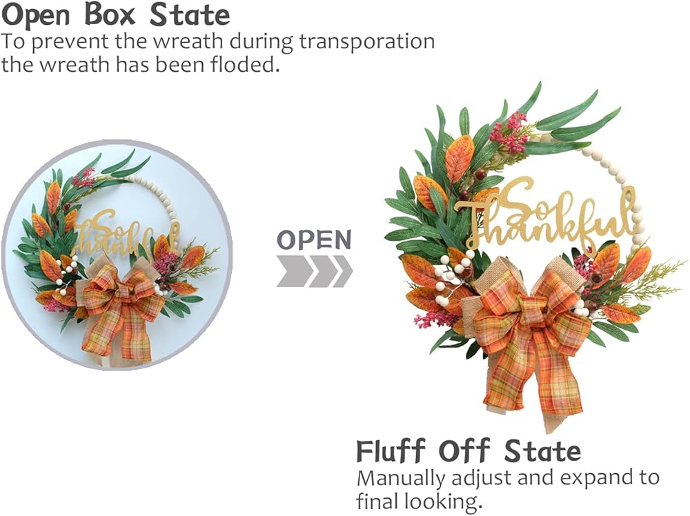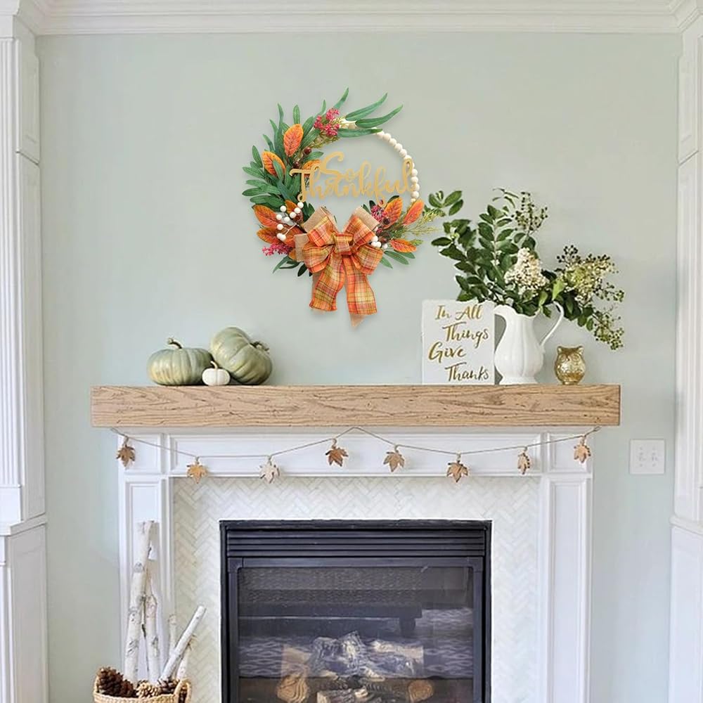 【استخدام واسع】 يعد إكليل الخريف رائعًا لتزيين الباب الأمامي والنافذة والجدار والمدفأة وباب المتجر وبيت المزرعة. هذا الإكليل الجميل سيجعل المكان أكثر سحراً