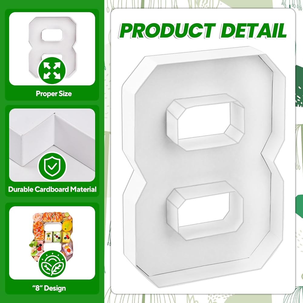 تصميم الحروف: تم تصميم صينية الورق المقوى المكونة من 8 قطع بشكل أرقام كلاسيكي، إبداعية وعملية، ومناسبة لوضع الطعام أو الفواكه أو الزهور، ويمكن أيضًا تعبئتها كصندوق هدايا عيد ميلاد، وديكورات الحفلات والهدايا.