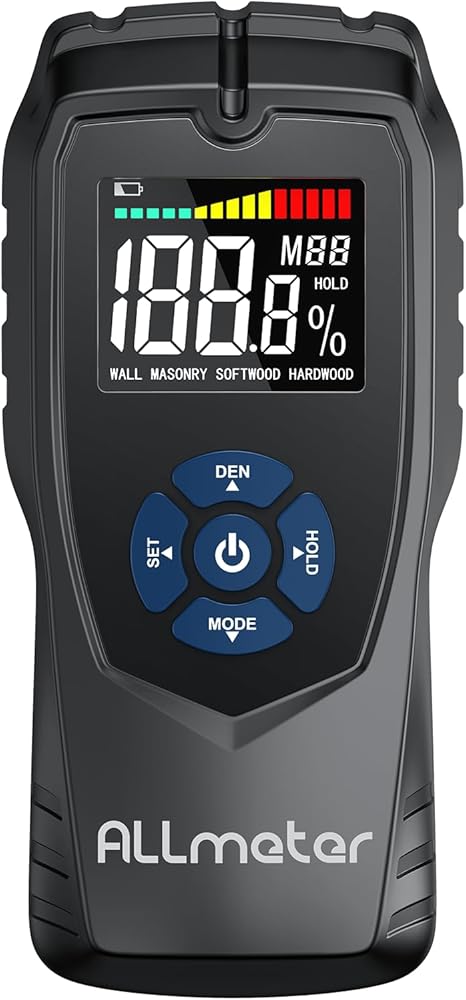 أوضاع قياس متعددة: قم بقياس الخشب بناءً على نوع الخشب (الخشب اللين/الخشب الصلب) أو الكثافة. تشمل نطاقات القياس الخشب اللين (0-60%)، والخشب الصلب (0-36%)، والجدران (0-20%)، والبناء (0-33%). ويتراوح عمق الكشف من 0 إلى 5 سم، وحجم لوحة الاستشعار الخلفية 5*6 سم
