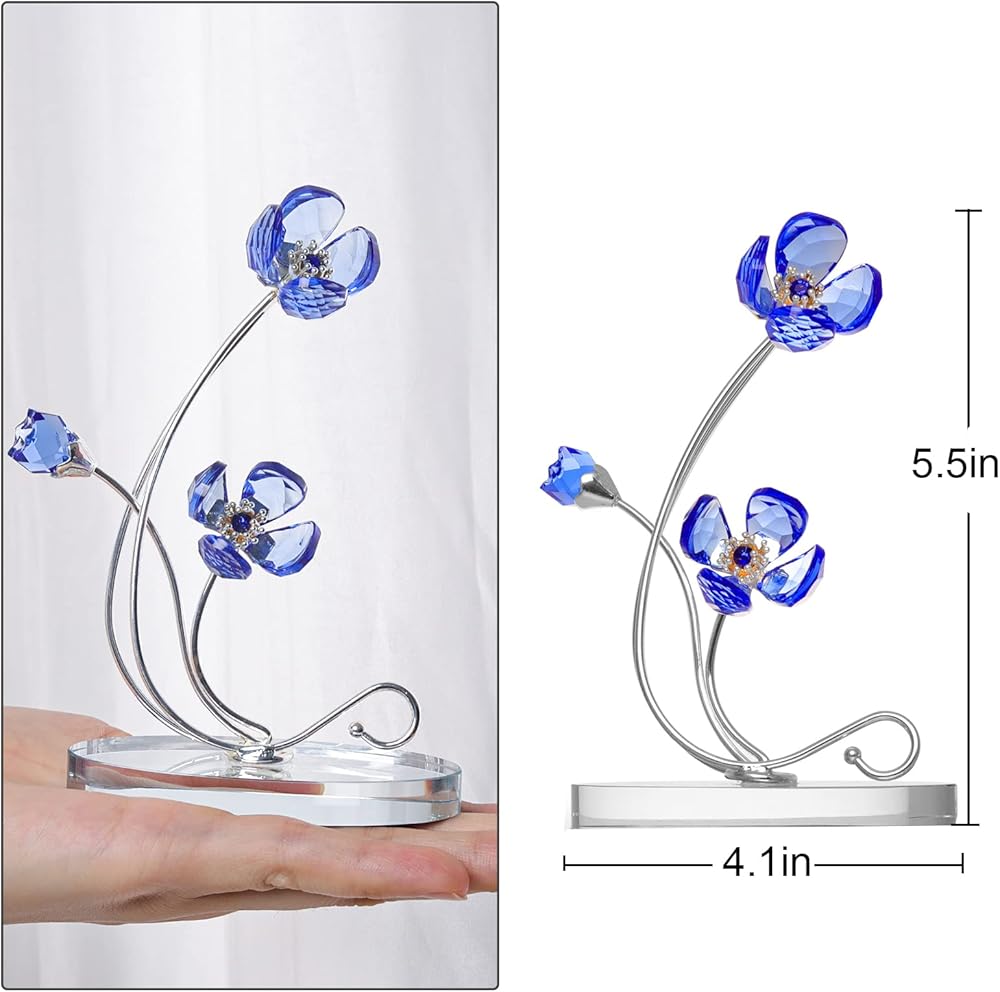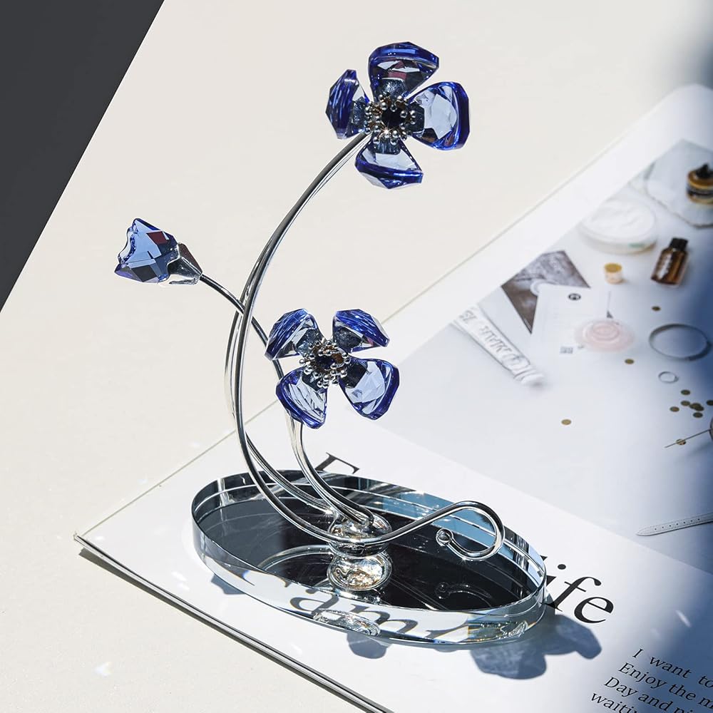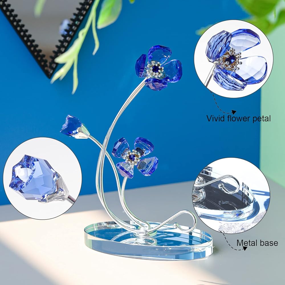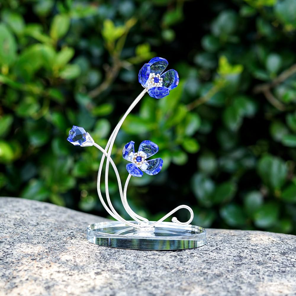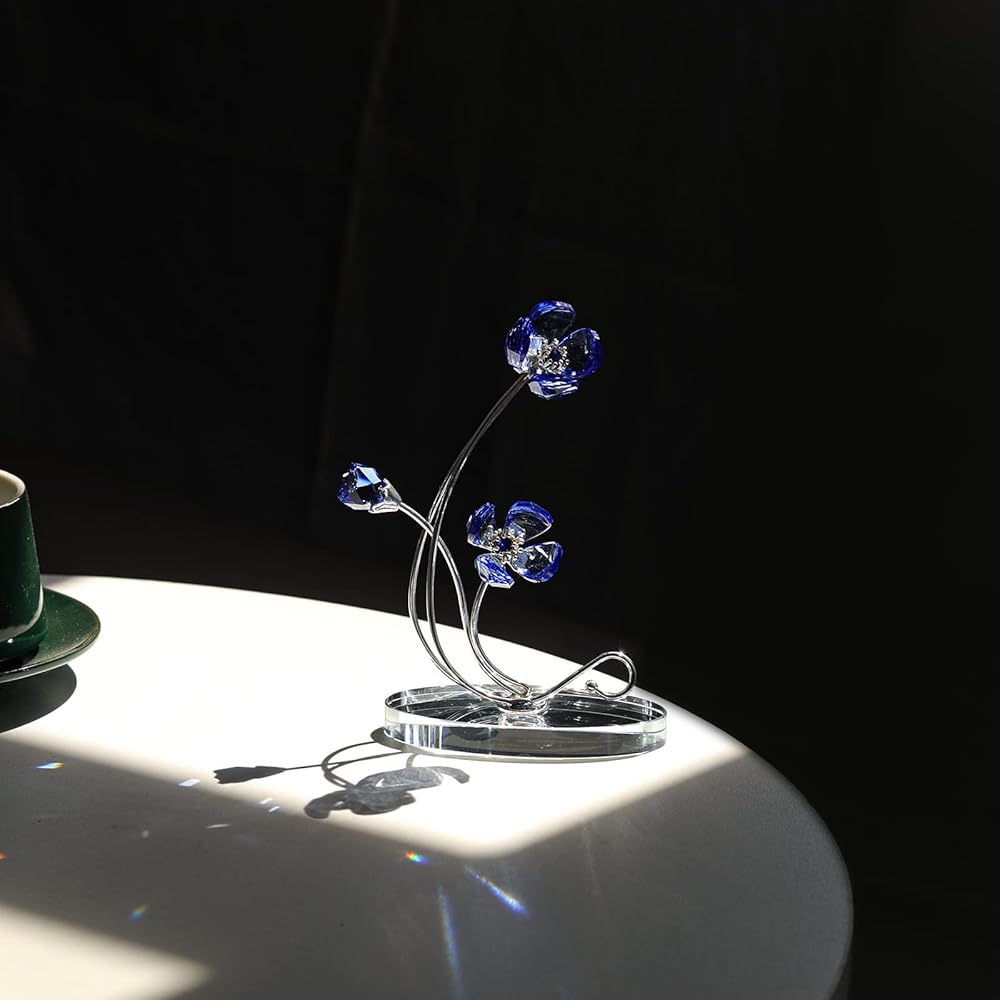 مادة زهرة البنفسج الاصطناعية: زهور بنفسجية مصنوعة من كريستال k9، والتي توفر مؤشر انكسار عالي ووضوح عالي؛ مع ساق معدنية طويلة.