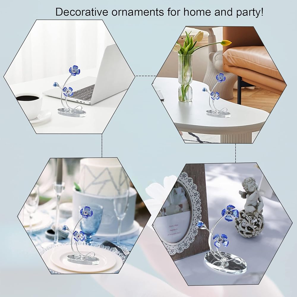 الحلي الزخرفية: زهور البنفسج الكريستالية مصنوعة على يد حرفيين ذوي خبرة، لامعة وستظهر بقع قوس قزح تحت أشعة الشمس، وستكون قطعة زينة مركزية لافتة للنظر لحفلات الزفاف، والحفلات، والمقاهي، والمنزل، وغرفة الطعام، وغرفة المعيشة وما إلى ذلك؛