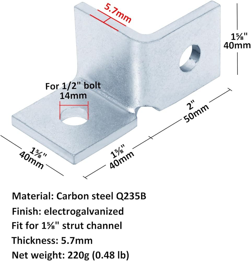 4 قطع (زوجين) تركيب جناح زاوية واحدة 2 فتحة لقناة تبختر 1-5/8 بوصة، قبول مسمار 1/2 بوصة، سمك 5.7 مم، مجلفن كهربائيًا