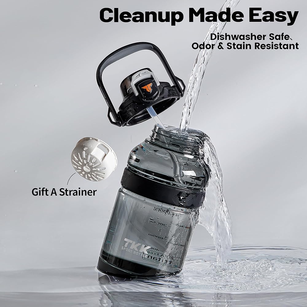 سهل التنظيف: إبريق الماء الرياضي هذا بسعة 64 أونصة و32 أونصة آمن للاستخدام في غسالة الأطباق، مما يجعل من السهل تنظيفه وصيانته. بالإضافة إلى ذلك، تضمن المادة المقاومة للبقع احتفاظ الزجاجة بلونها الأصلي وسطوعها حتى بعد عدة غسلات.