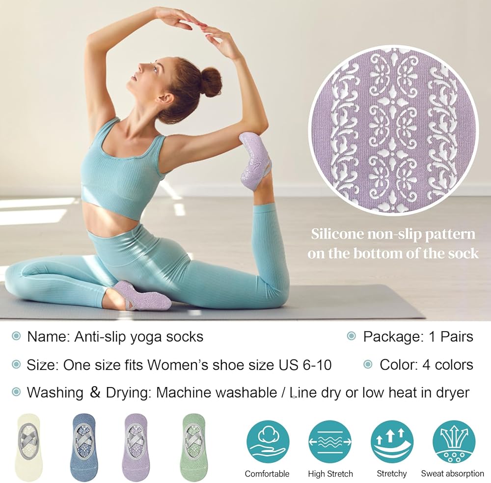 جورب اليوغا، مناسب لليوجا والبيلاتس والرقص وتدريبات القوة والتمارين المنزلية وجميع الأنشطة الأخرى. يضمن التصميم المضاد للانزلاق الثقة والأمان في كل حركة.