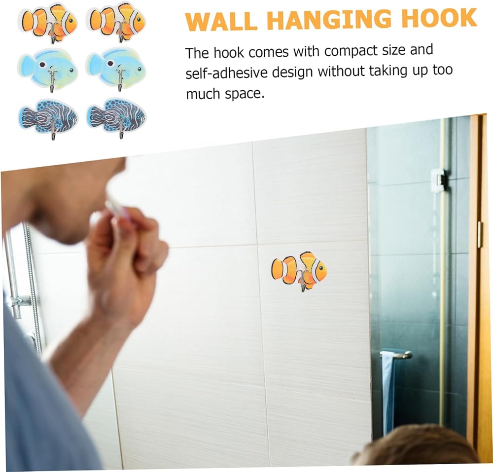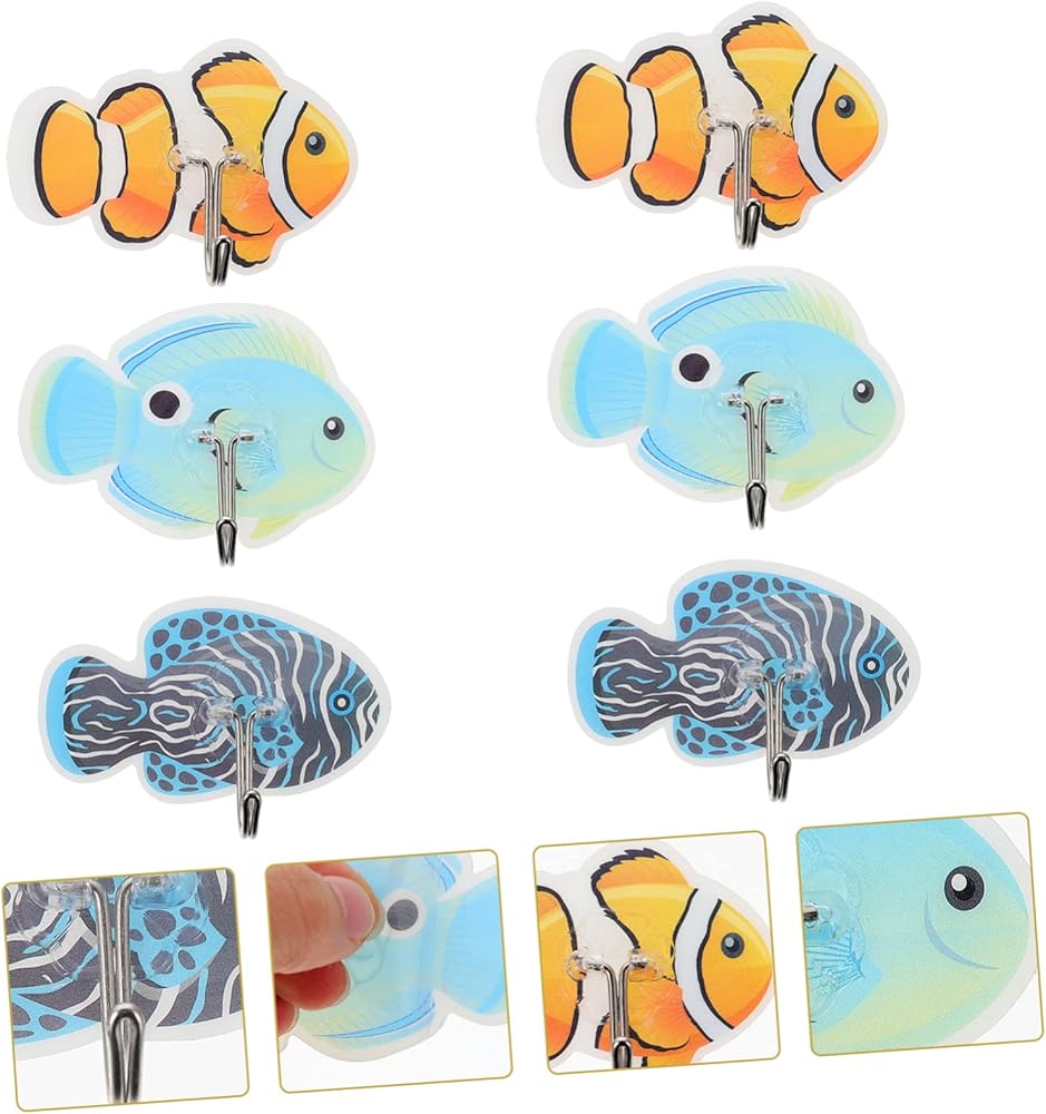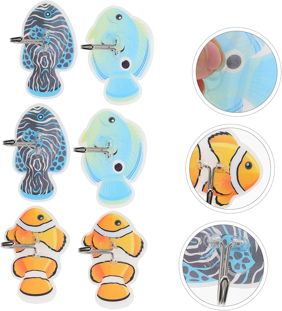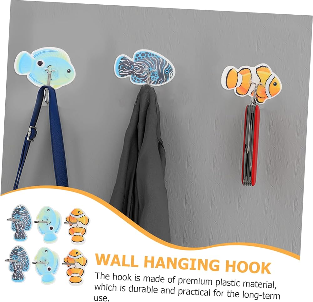 6 قطع خطاف سمك المحيط لتزيين السيارة على شكل سمكة سلسلة مفاتيح لمفاتيح السيارة ديكور جداري خطاف شماعة معطف جدار جبل رف الملابس سمكة المهرج مسمار فولاذي