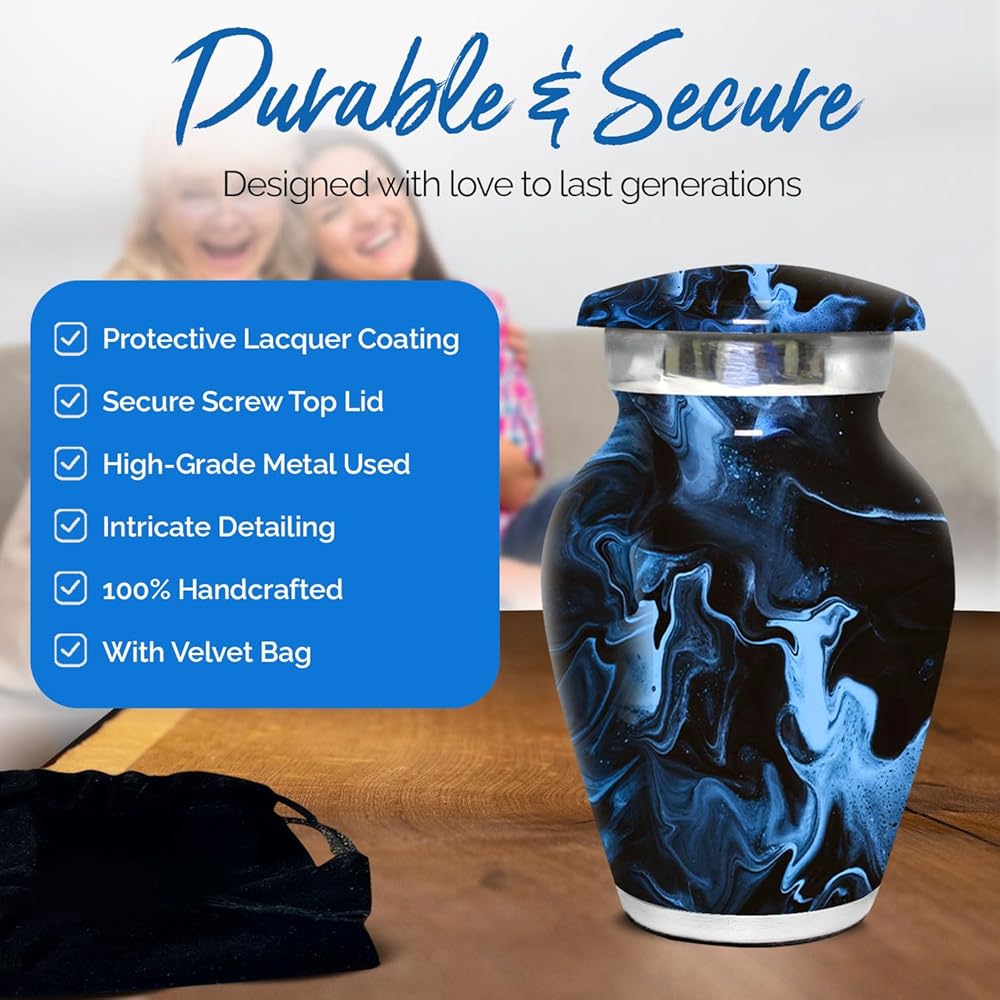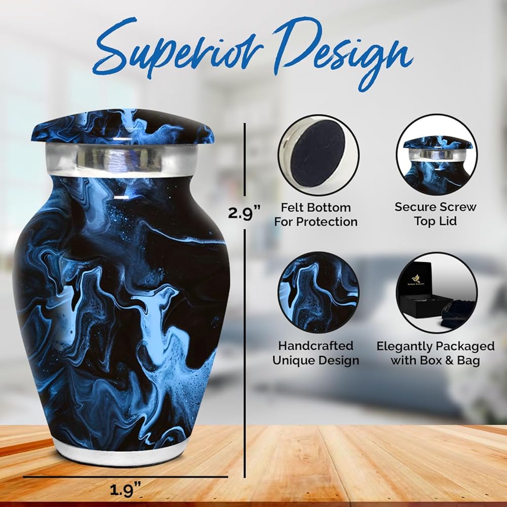 جرة صغيرة مصنوعة يدويًا للرماد: الجرة الرخامية للرماد للنساء والرجال مصنوعة يدويًا لتقديم المنتج الأكثر تميزًا. هذه الجرة الصغيرة للتذكار للرماد البشري سوف تعتز بعلاقتك الخاصة مع أحبابك. إن الجرة الجنائزية للرماد مصنوعة يدويًا لذا يمكن أن تحدث عيوب/اختلافات صغيرة وهي جزء من جودة المنتج المصنوع يدويًا.