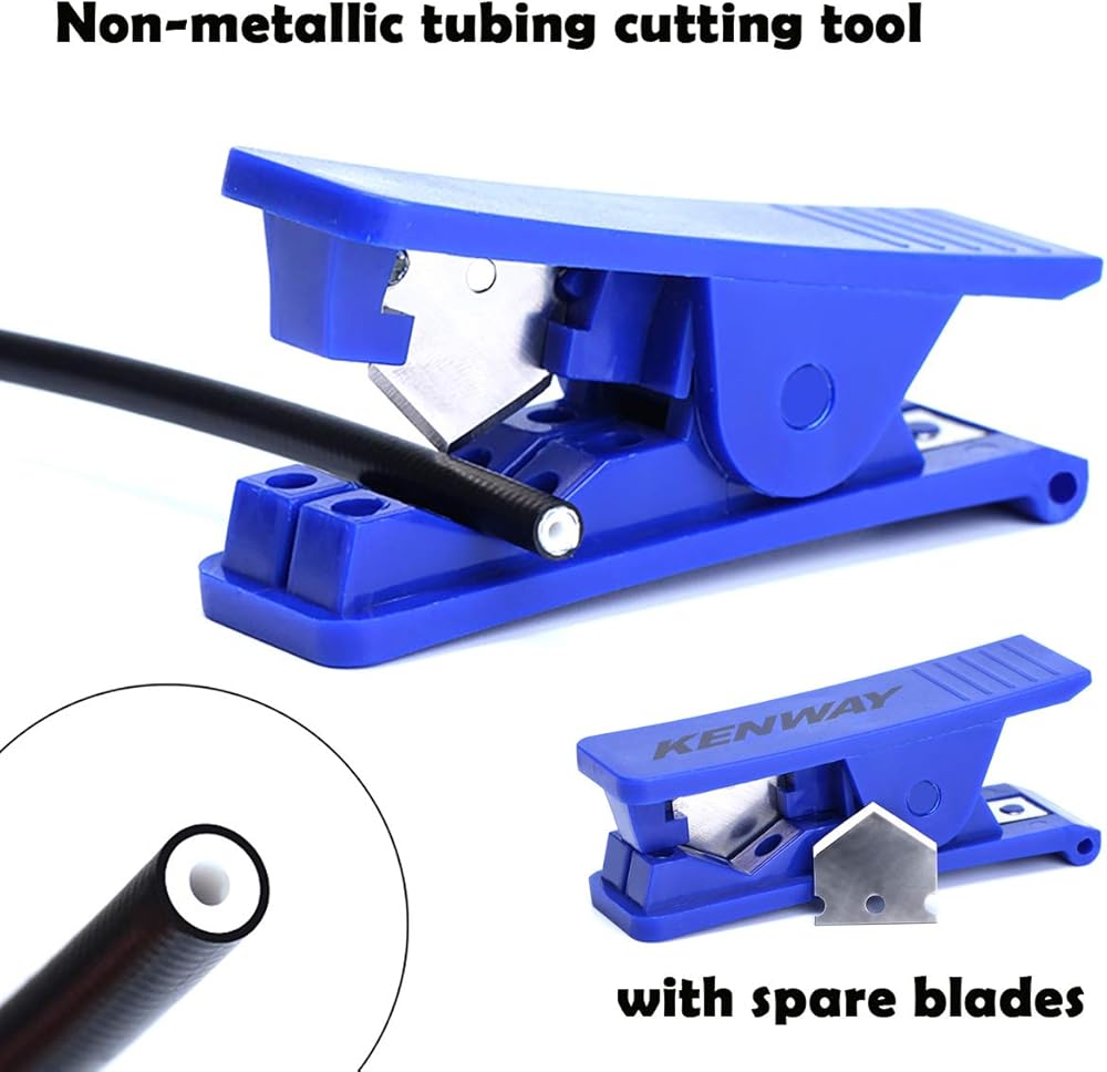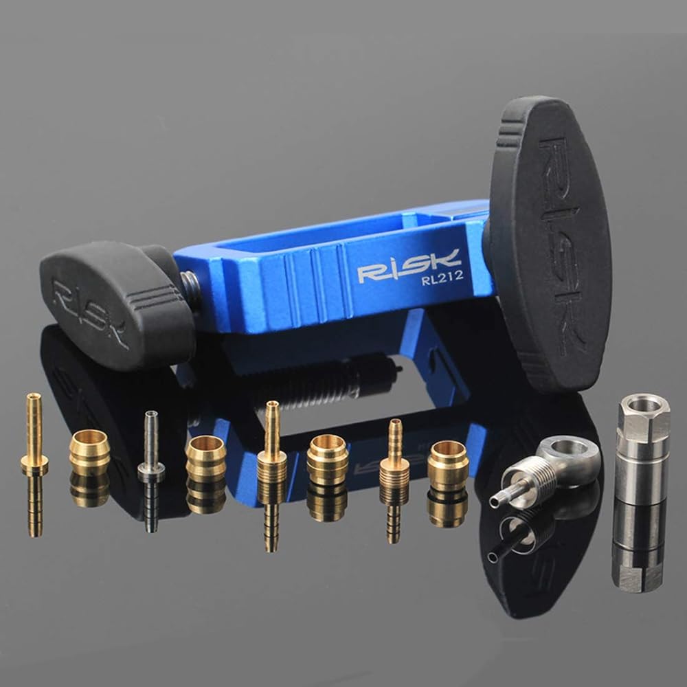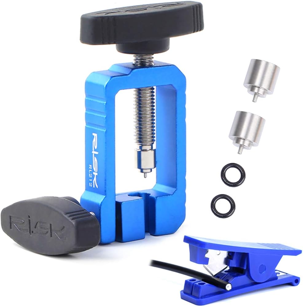 أداة إدخال محرك إبرة مطورة، أداة إدخال تركيب خرطوم هيدروليكي للدراجة، هيكل من سبائك الألومنيوم مع قاطع خرطوم هيدروليكي، قطعتان من الكشتبانات وحلقتان على شكل حرف O (أزرق)