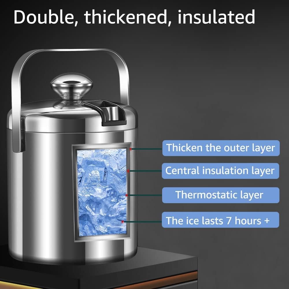 【عزل حراري طويل الأمد】يعد دلو الثلج المزدوج المعزول "Mipau" جيدًا للحفاظ على الثلج لفترات أطول من الوقت، وعادة ما تصل إلى ثماني ساعات، وحتى لفترة أطول في الشتاء، ويستخدم على نطاق واسع في الحفلات، ووجبات العشاء العائلية، الولائم والحانات والمطاعم الخ.