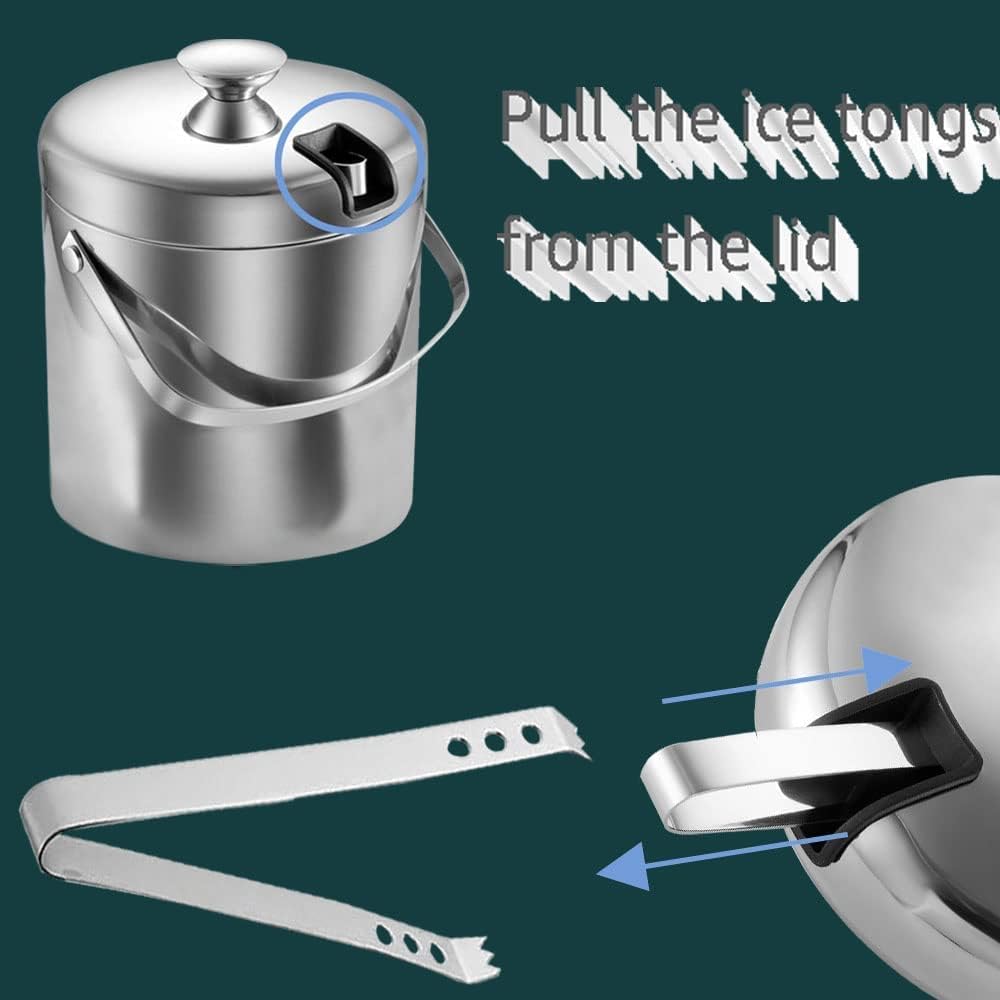 【ترصيع ملقط الثلج في الغطاء】يأتي دلو الثلج الخاص بنا مزودًا بزوج من ملقط الثلج لحمل مكعبات الثلج. يتم تضمين ملقط الثلج في غطاء دلو الثلج لسهولة الحمل والحفظ. لن تنسى أبدًا إحضار ملقط الثلج مرة أخرى