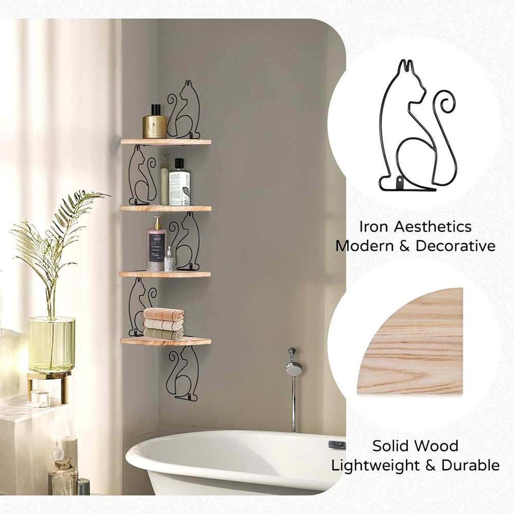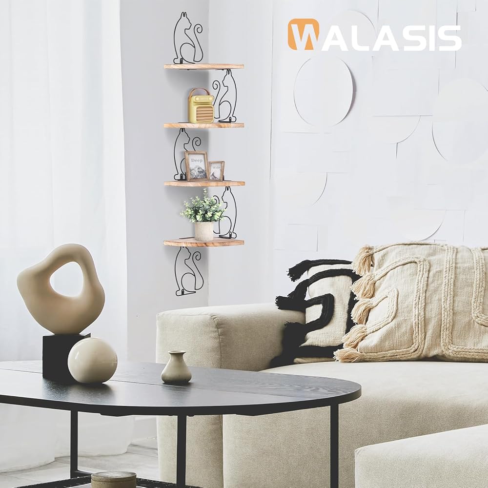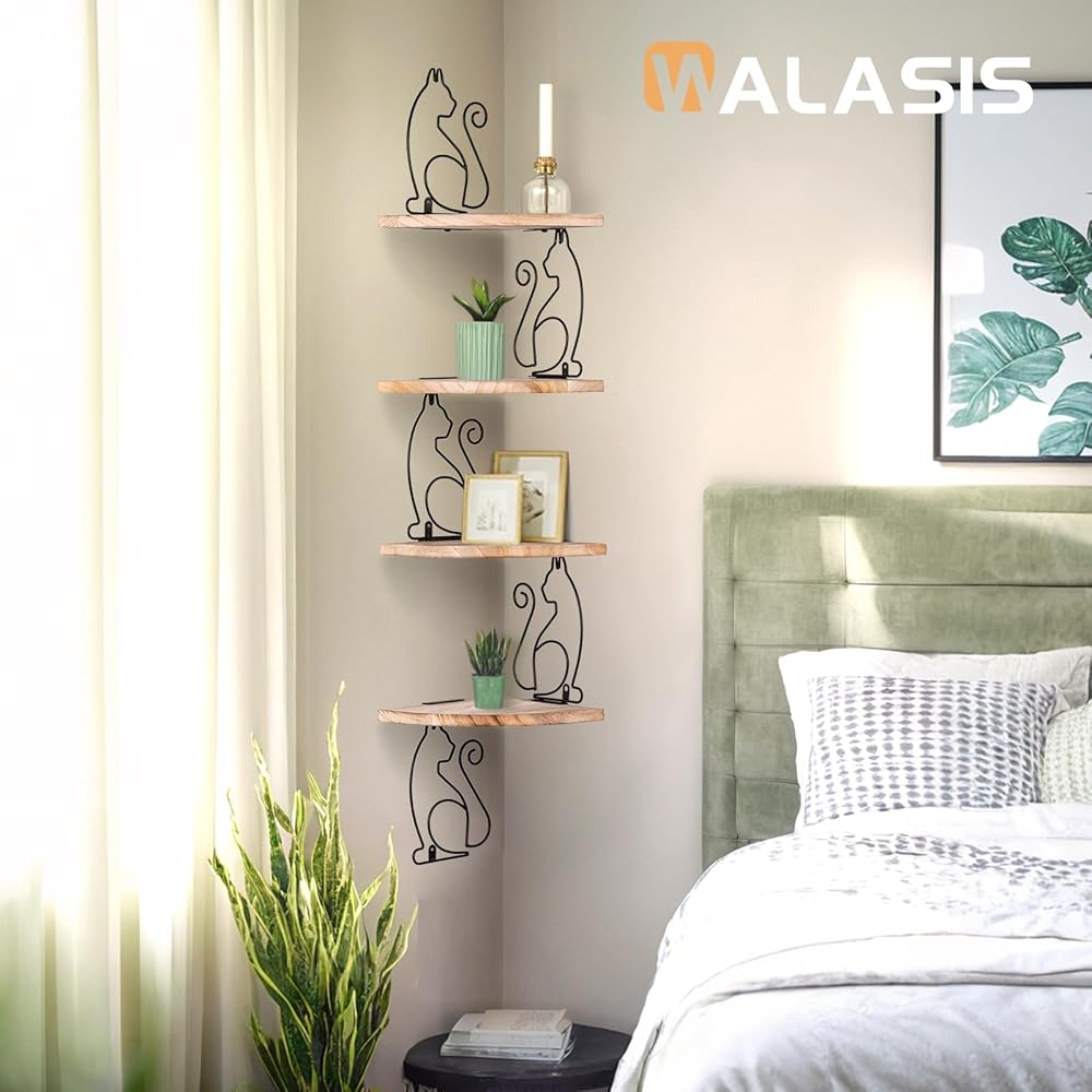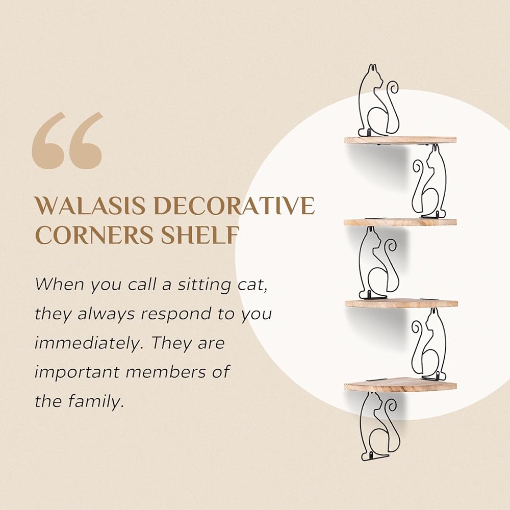 ديكور حائط على شكل قطة: تمامًا كما هو الحال عندما تنادي قطتك وتدير رأسها للرد، فإن تصميمنا مستوحى من هذا. يحتوي كل رف زاوية سلكي على قطة جاهزة للرد عليك في أي وقت، مما يجعل الرفوف المثبتة على الزاوية ديناميكية وممتعة، ويضيف الفرح إلى حياتك. يعد هذا الرف الزاوية المثبت على الحائط أمرًا ضروريًا لمحبي القطط.