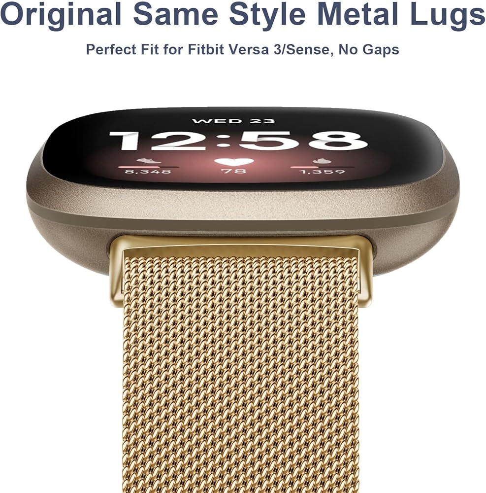 Mugust Metal Magnetic Band Compatible with Fitbit Versa 4 bands / Sense 2 bands for Women Men, Stainless Steel Mesh Loop Adjustable Wristband Replacement Strap for Fitbit Versa 4 /Sense 2