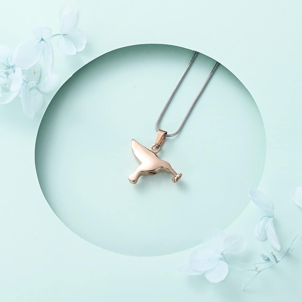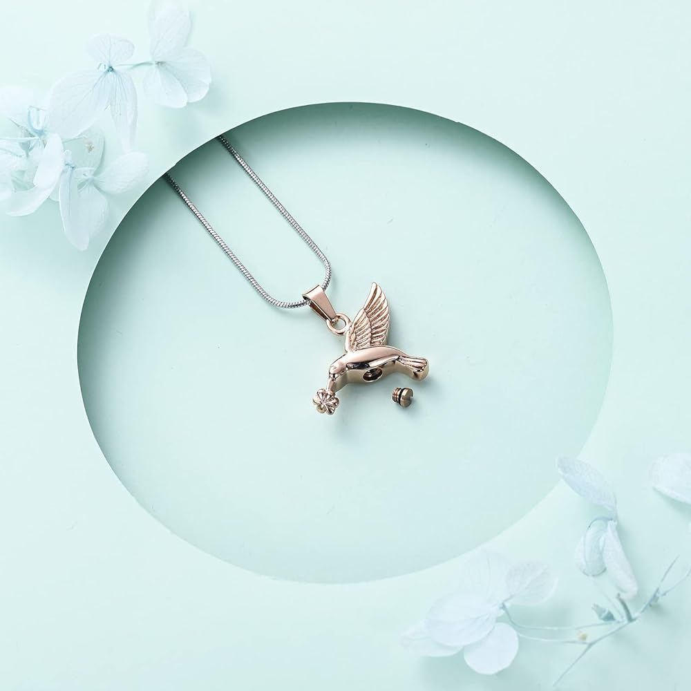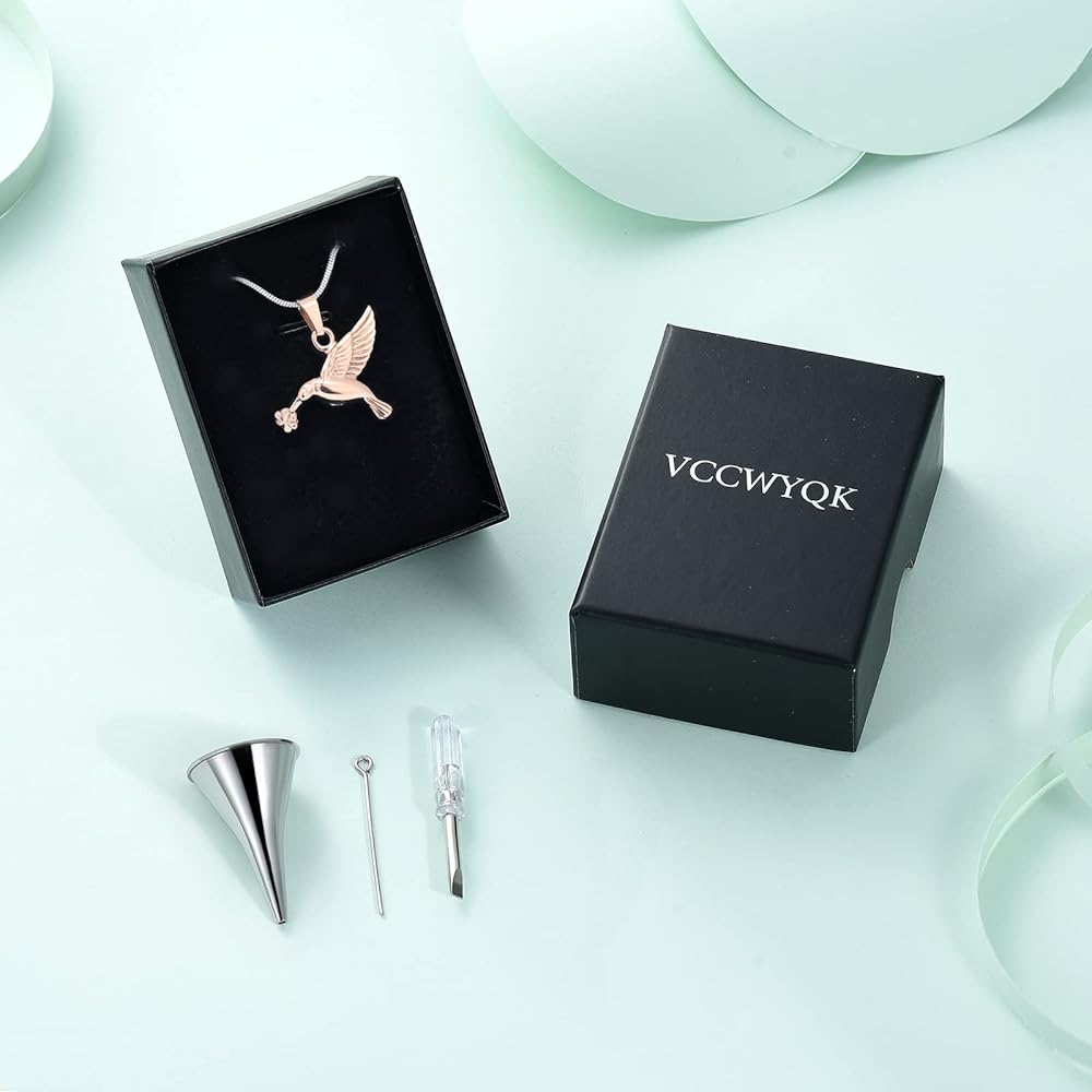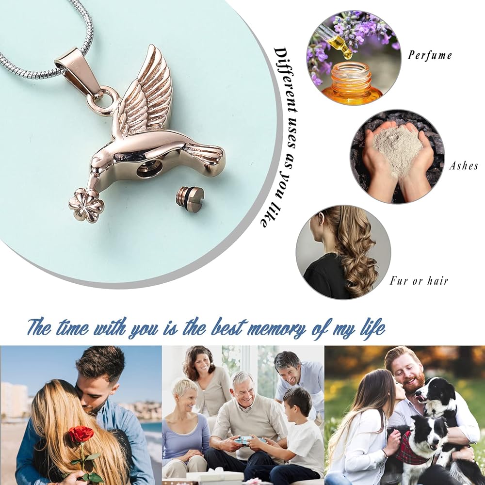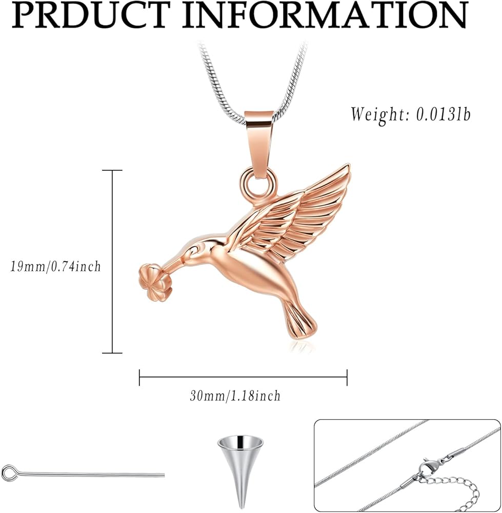 🐦 【مجوهرات الطائر الطنان بحرفية متقنة】: القلادة مصنوعة من الفولاذ المقاوم للصدأ 316L عالي الجودة، لا يبهت، ومتين. تم تجهيز أغطية البراغي الخاصة بنا بحشية محكمة الغلق لضمان عدم سقوط الرماد الداخلي حتى عند ارتدائها يوميًا.