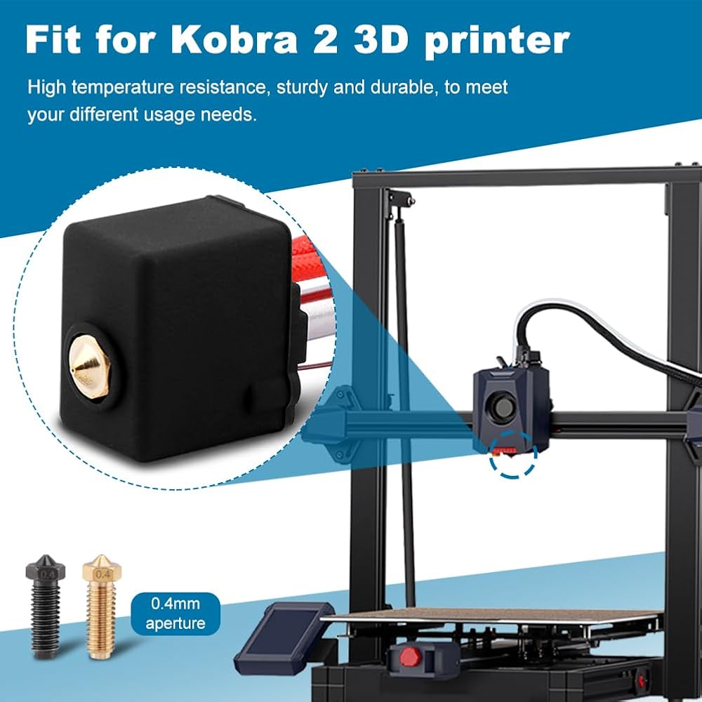 【WHAT YOU WILL GET】You will receive 1set printer nozzle block (pre-installed, including heater cartridg-e, thermistor, heat block, throat tube, nozzle), 2pcs protective cover, 2pcs printer nozzle. Fit for Kobra 2 3D printer.