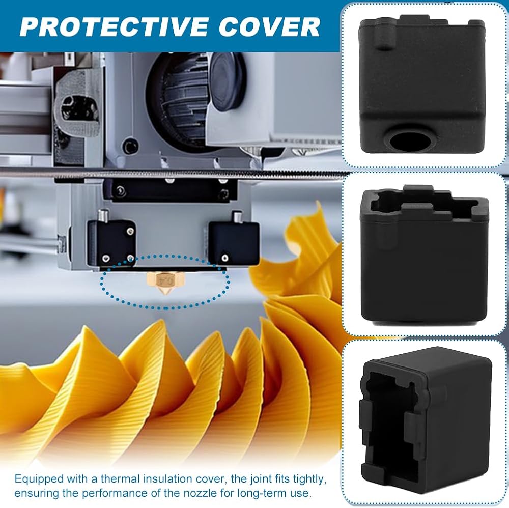 【PROTECTIVE COVER】 Equipped with a thermal insulation cover, the joint fits tightly, ensuring the performance of the nozzle for long-term use. Remov-e the old hot end and install the new hotend to start.