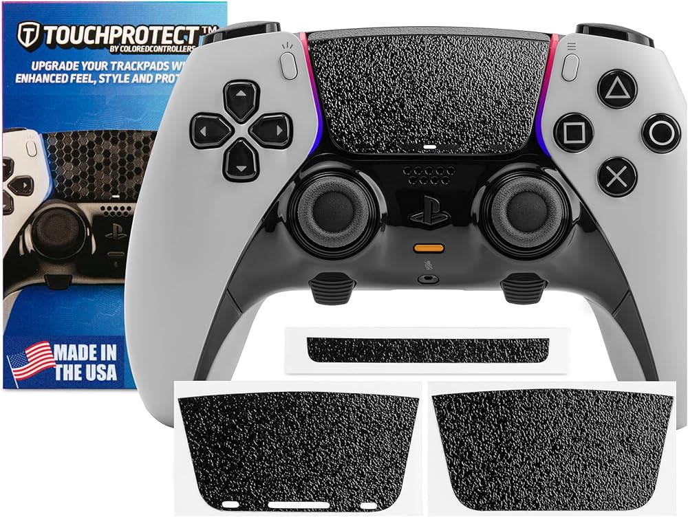 - طريقة ميسورة التكلفة لتخصيص وحدة تحكم PS5 وإضفاء طابع شخصي عليها، مع الحفاظ عليها في حالة رائعة. قم بحماية لوحة التتبع الخاصة بك من التآكل المبكر