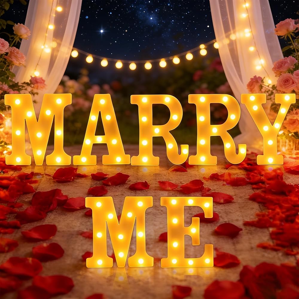 • 【Memorable Moment for Her】Our marry me light up letters kits are romantic and dreamy. Exquisite letter light sign will illuminate your proposal scene with soft light, making your love story even more memorable.will make your proposal ceremony more perfect, gorgeous, and unforgettable. It will be a romantic evening just for your love.