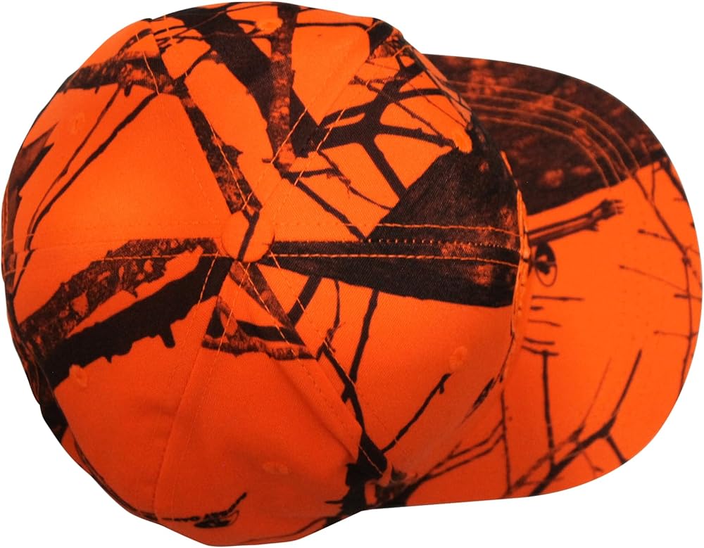 Mossy Oak New Break Up Blaze Orange قبعة قماشية مموهة بالكامل من الأمام والخلف مع حزام خلفي من الفيلكرو للتعديل. أوسفم S-L. غير مصممة لرؤوس XL. لا يوجد شبكة، قماش بوليستر متين بالكامل